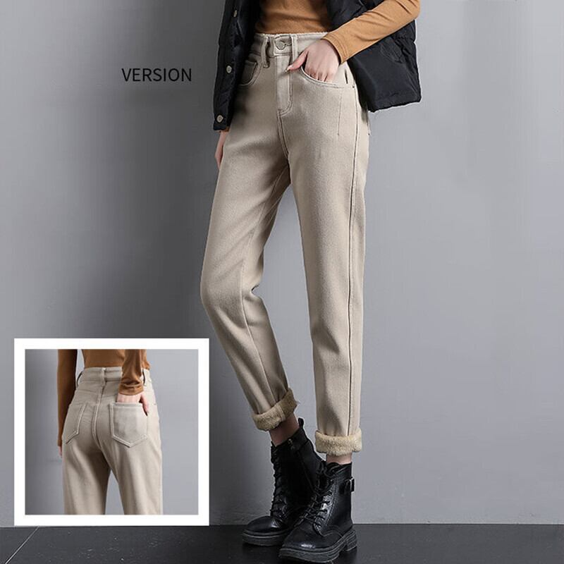 送料無料 ヴィンテージブラウンプラスベルベットハーレムジーンズ女性の基本的なウエスト秋冬 Vaqueros 厚く暖かい足首の長さのデニムパンツ オータム 秋物 ウィンター 冬物 ビンテージ AE335652793013390