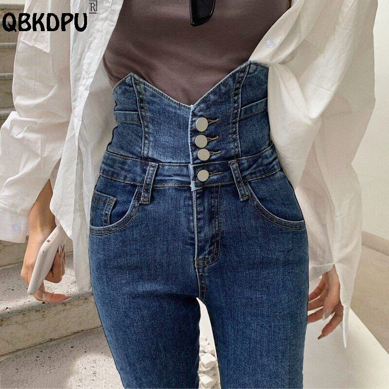 送料無料 スーパーウエストの女性のジーンズボタンスキニー Vaqueros スリムデニムズボンカプリパンツカウボーイ鉛筆のズボンの女性 AE3356585591537995