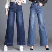 送料無料 ストリート特大ストレートジーンズ女性ウエストワイドレッグパンツオフィスレディだぶだぶ Vaqueros ママデニムズボン ワイドパンツ 会社 学校 通勤や通学にも AE3356566311251178