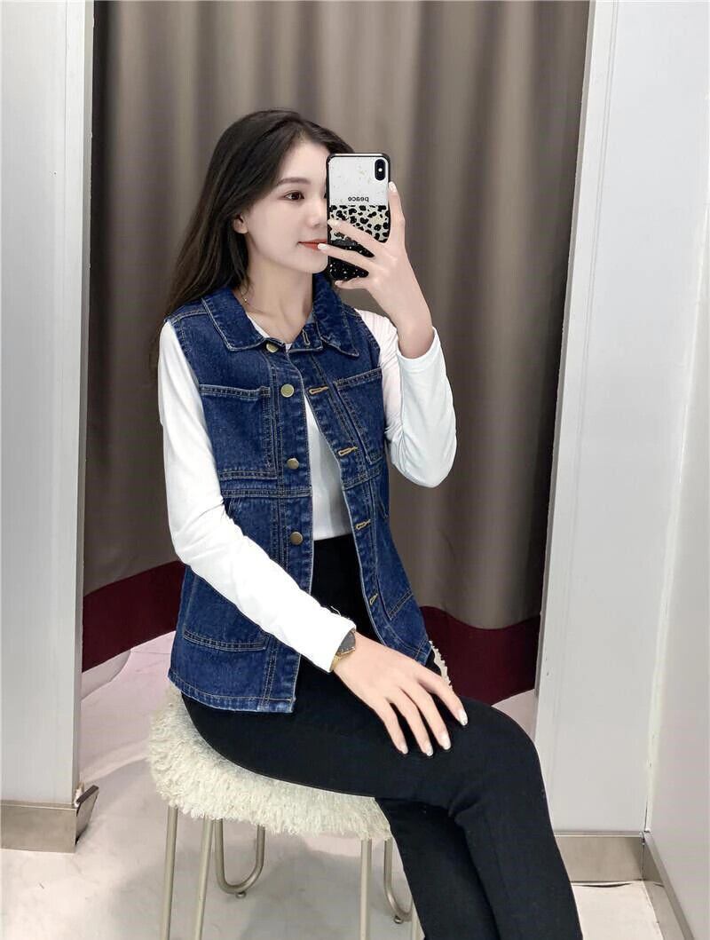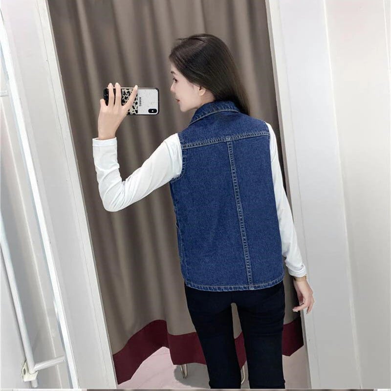 送料無料 特大 100 キロ クリック デニム ベスト女性春ヴィンテージ Chaleco Vaquero シングル ブレスト ノースリーブ ジャケット スプリング 春物 ビンテージ AE3356563045924864