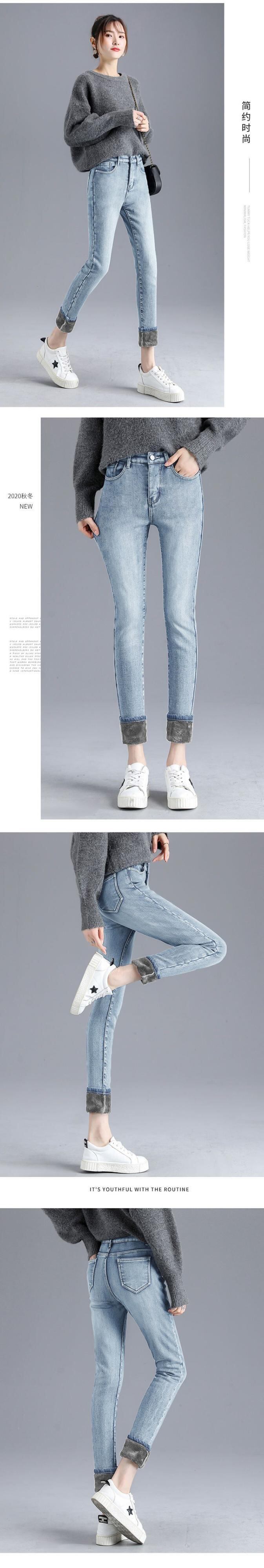 送料無料 プラスベルベットスキニー冬のジーンズ女性ストリートウエスト Vaqueros ブルーペンシルパンツ暖かい厚いデニム Pantalones ウィンター 冬物 AE335659627863856