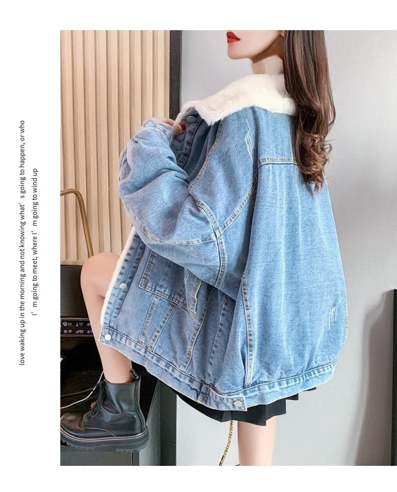 送料無料 特大 85 キログラムプラスベルベットデニムジャケット緩い女性ジーンズコート暖かいパッド入り冬ベスト 2022 基本 Jaquetas ウィンター 冬物 AE3356517566512850