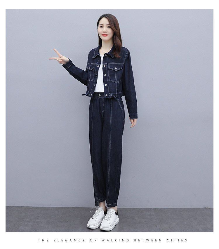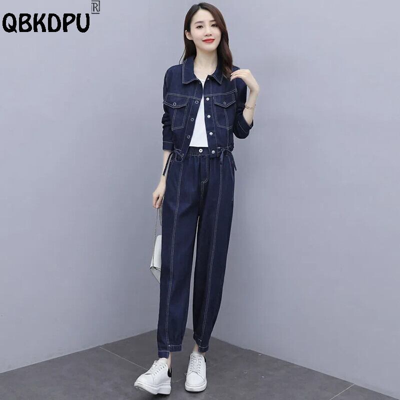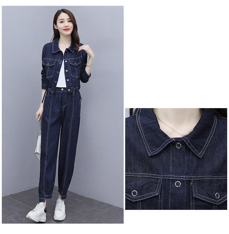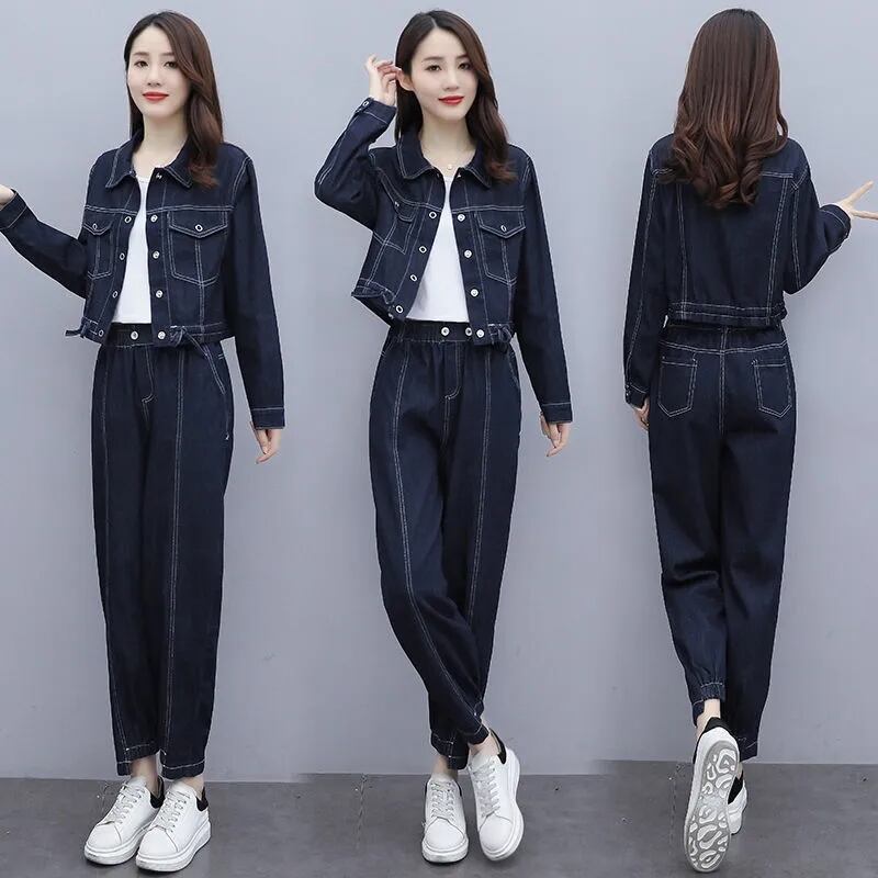 送料無料 ヴィンテージジーンズツーピースセット女性春ハーレムジーンズスーツ長袖レースアップデニムジャケットストリートウエスト貨物 Vaqueros ロング スプリング 春物 ビンテージ AE3356583589838025