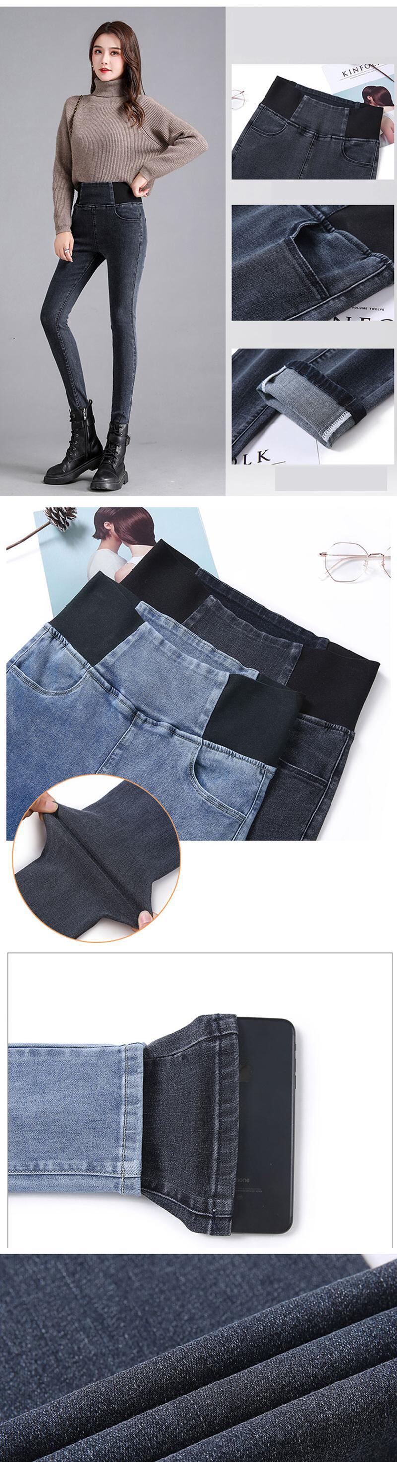 送料無料 女性のプラス ベルベット冬ジーンズ 38 特大パッチワーク ストレッチ暖かいデニム ズボン ウエスト厚み Vaqueros スキニー パンツ ウィンター 冬物 AE3356559715008424