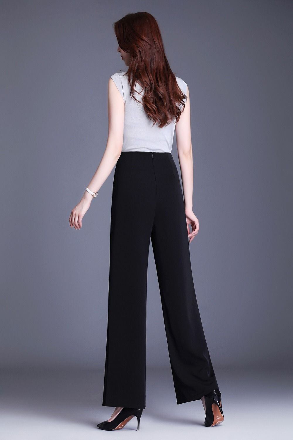 送料無料 ブルーウエストワイドレッグパンツ女性の夏のバックジッパー薄いだぶだぶ Pantalones OL オフィスレディ母のストレートズボン サマー 夏物 ワイドパンツ 会社 学校 通勤や通学にも AE3356516556618144