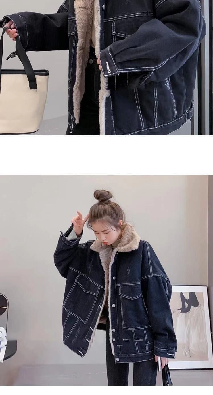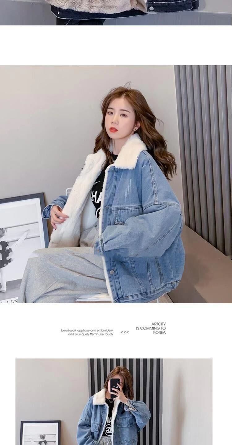 送料無料 暖かいラムウールジーンズジャケット女性 2022 厚みのベルベットの冬のジャケット leece デニム特大コート ウィンター 冬物 AE3356579999435640
