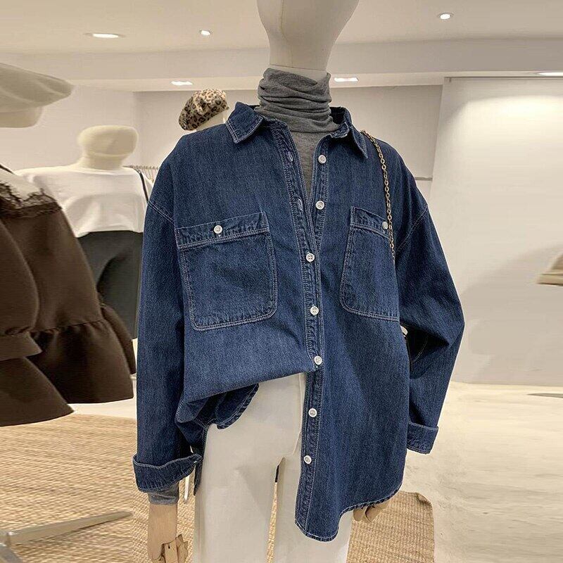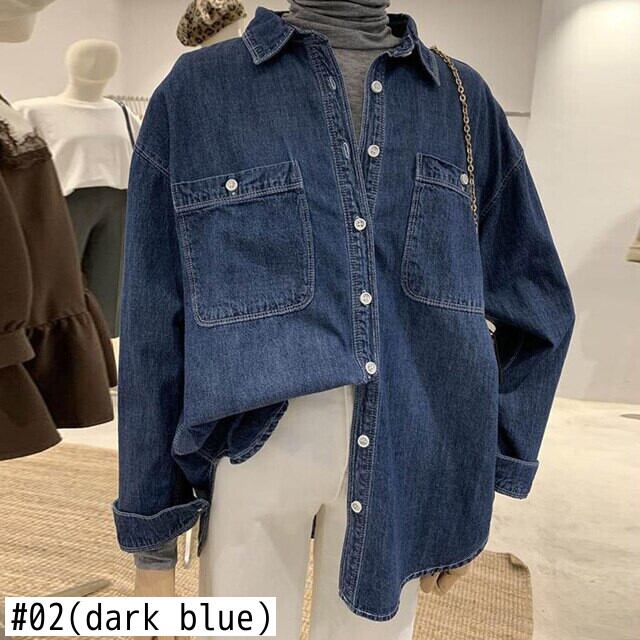 送料無料 ルーズ レディース デニム シャツ 春 ダークブルー ジーンズ ブラウス 長袖 Clic De Moda 2022 ロング スプリング 春物 AE3356528960817093