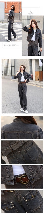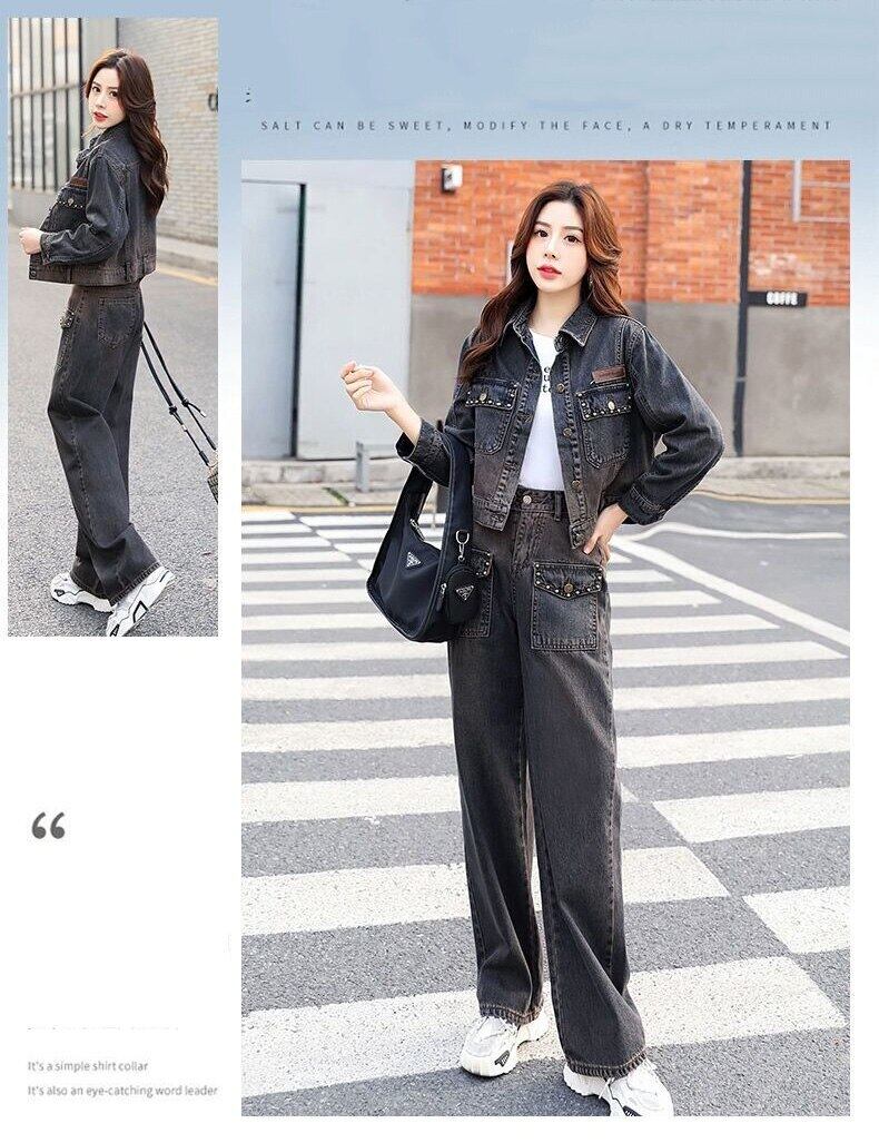 送料無料 ストリート デニム バギー パンツ セット ビーズ ツー ピース セット レディース衣装クロップ ジーンズ ジャケット ワイド脚ジーンズ春ヴィンテージ スーツ スプリング 春物 ワイドレッグ ワイドパンツ ビンテージ AE3356574011163325