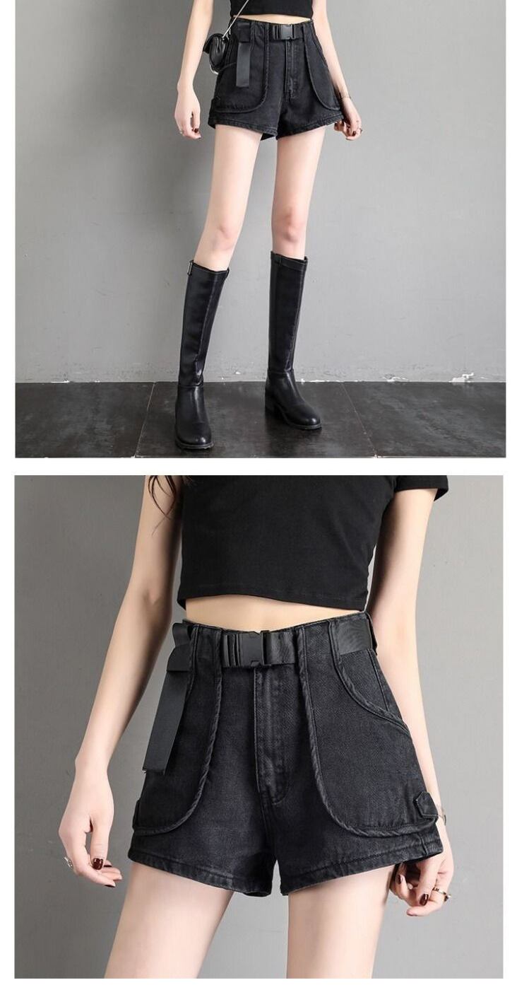 送料無料 黒ヴィンテージサッシショーツジーンズ女性プラスサイズ 5XL ウエスト A ラインカーゴ Pantalones Cortos ポケットストリートデニムショート ブラック 大きめサイズ ブルマー Aライン ビンテージ AE3356566292453397