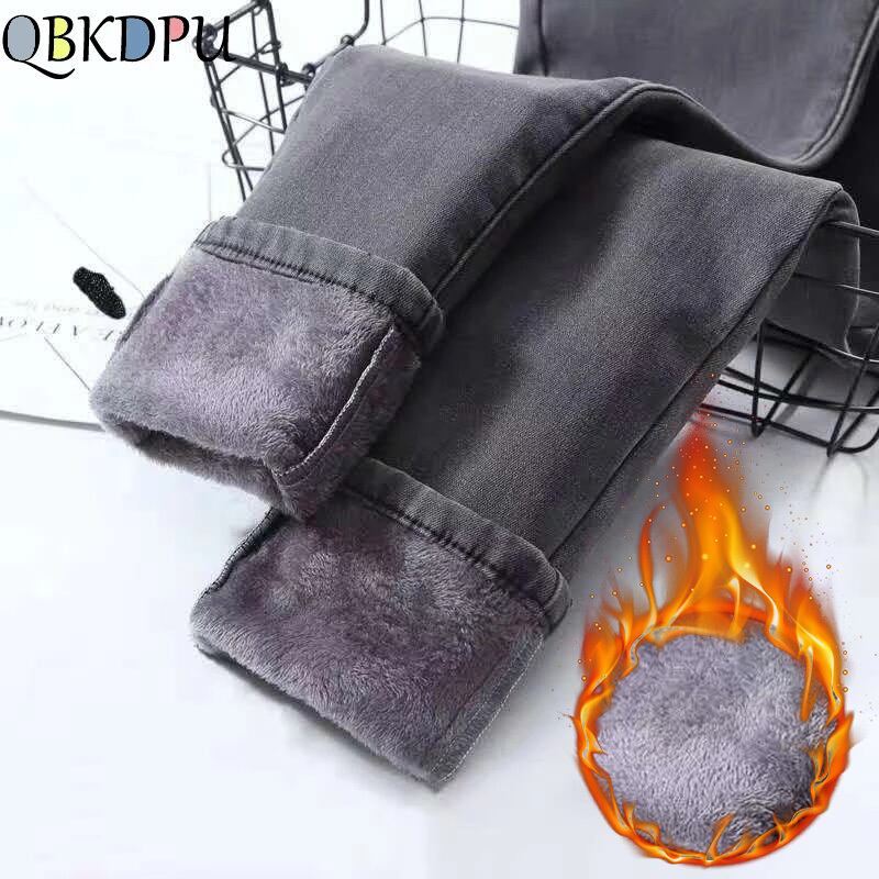 送料無料 冬ミッドウエストスキニーウォームジーンズ女性プラスベルベット足首の長さ Vaqueros カプリパンツ厚い鉛筆パンツフラッシュデニムズボン ウィンター 冬物 AE3356525541946205