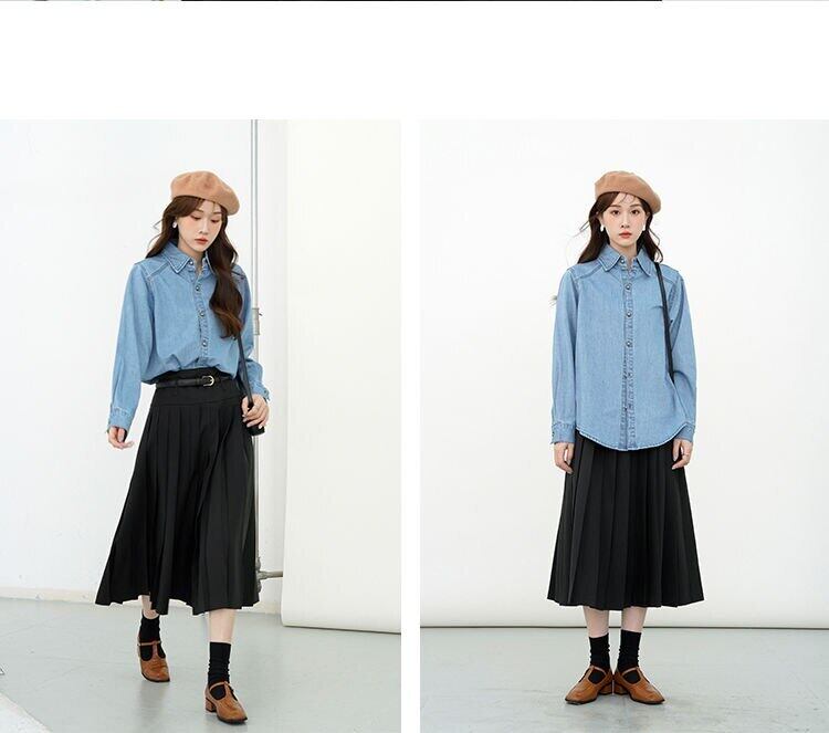 送料無料 ポロカラー デニム ブラウス シングル ブレスト レディース ジーンズ シャツ 2023 春 長袖 ブルー ロング スプリング 春物 AE3356530449284288