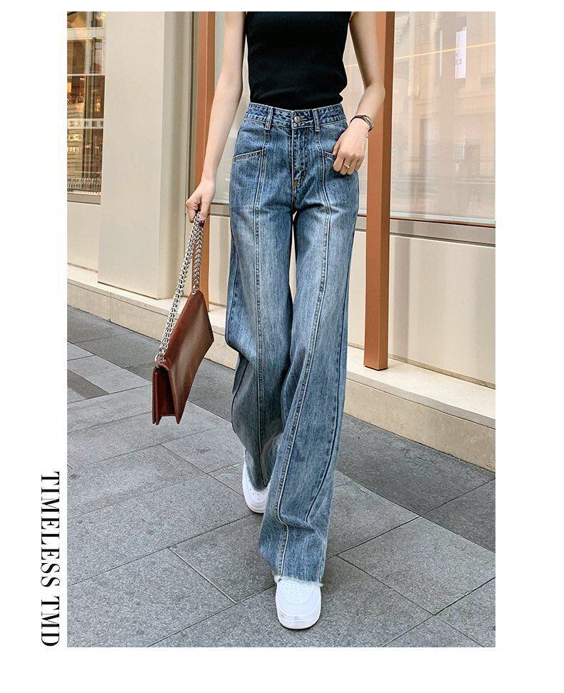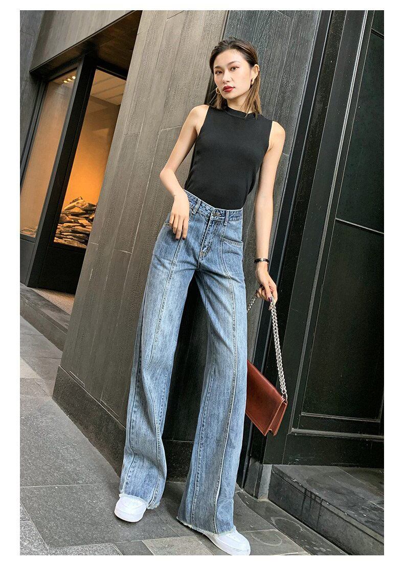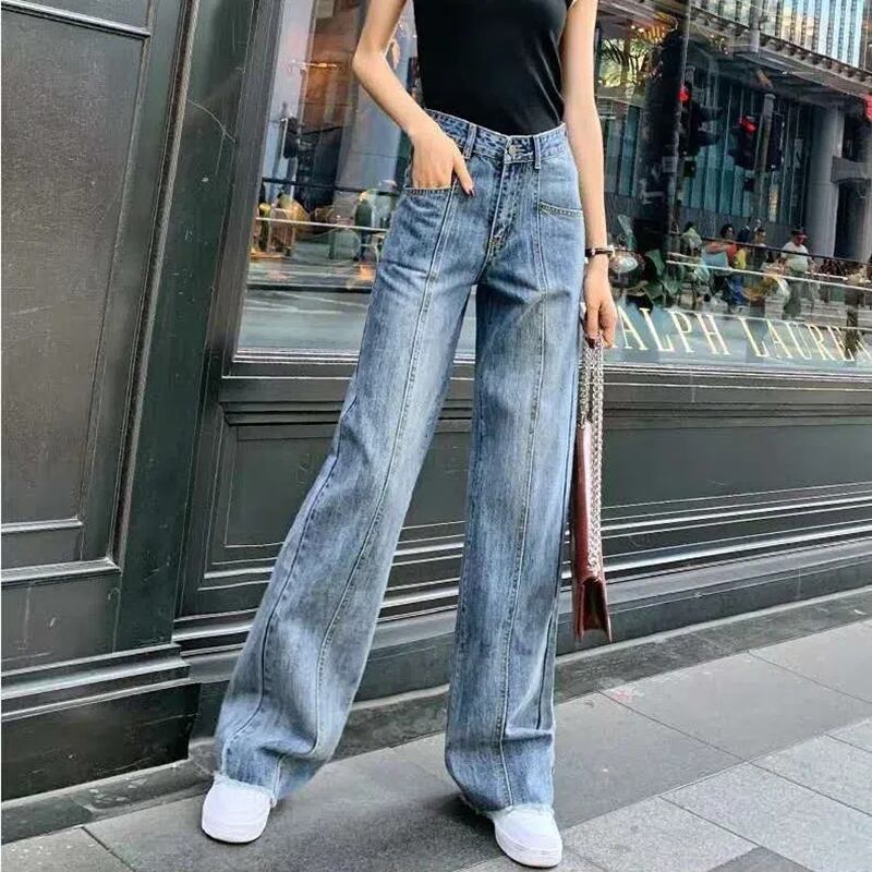 送料無料 ストリート女性ワイドレッグジーンズ漂白ウエストだぶだぶ Vaqueros ブルーストレートパンツ春デニムズボン スプリング 春物 ワイドパンツ AE3356576830725046