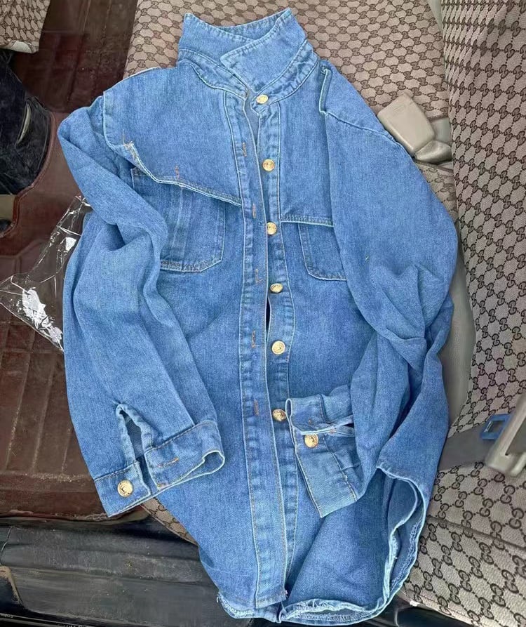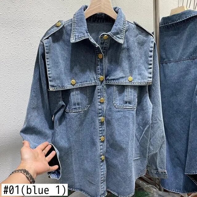 送料無料 高級ボタンジャンブラウス女性デニムシャツストリートブルーカウボーイ 2023 春秋トップス スプリング 春物 AE3356538837114453