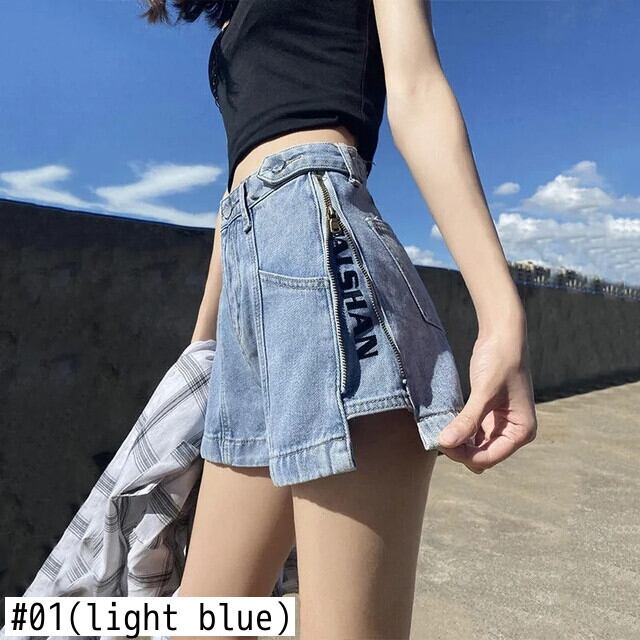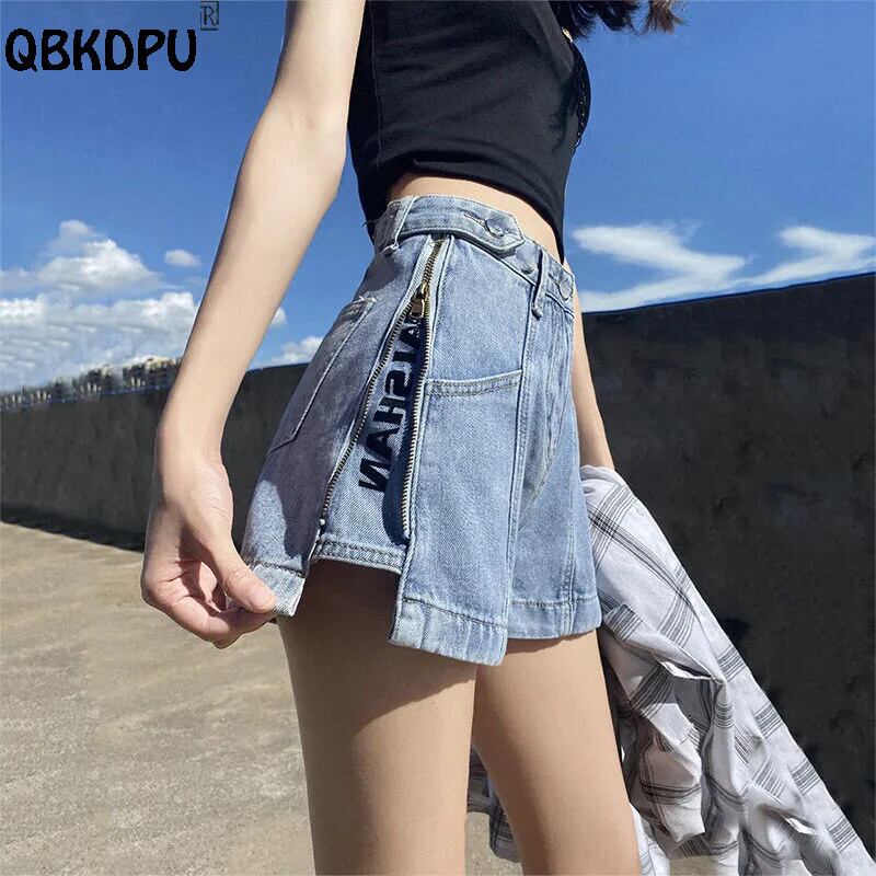 送料無料 ストリートサイドジッパーショーツジーンズ女性手紙ワイド脚 Vaqueros 2023 夏デニムショーツウエストジーンズパンツ サマー 夏物 ブルマー ワイドレッグ ワイドパンツ AE3356528116831245