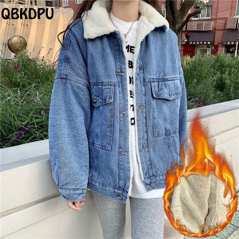 送料無料 ストリートスノーウェア女性ジャンジャケット 2022 冬暖かい可逆パッチワークフリースコート Bf ウール豪華なデニム生き抜く ウィンター 冬物 AE3356513925877733
