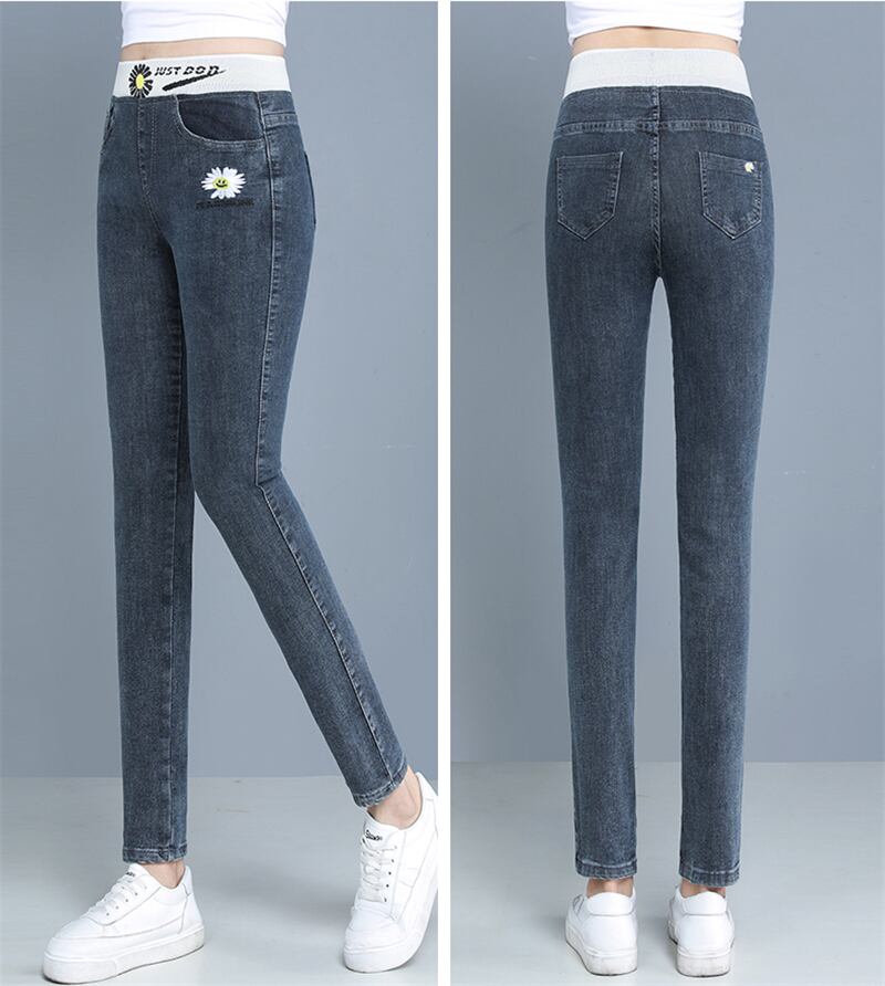 送料無料 特大 34 ウエストストレッチジーンズ女性パッチワークレギンスデイジー刺繍スキニー Vaqueros 鉛筆デニムパンツ AE3356573723630999