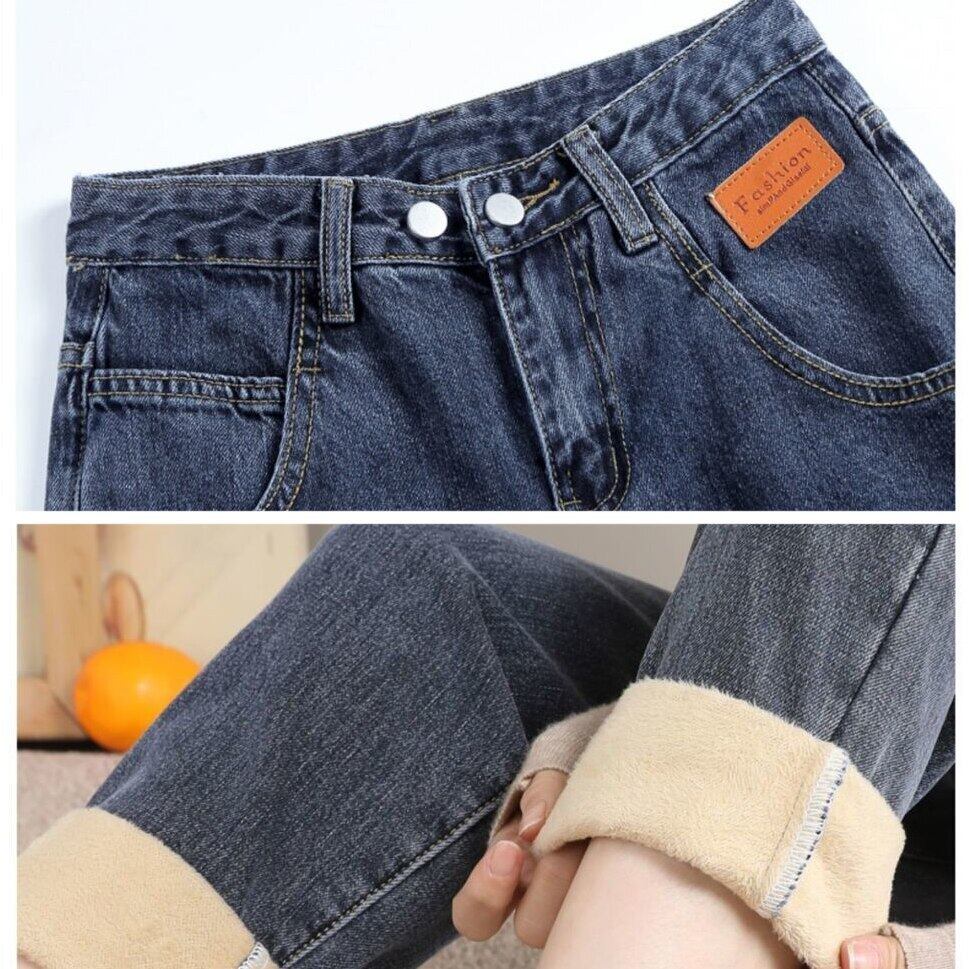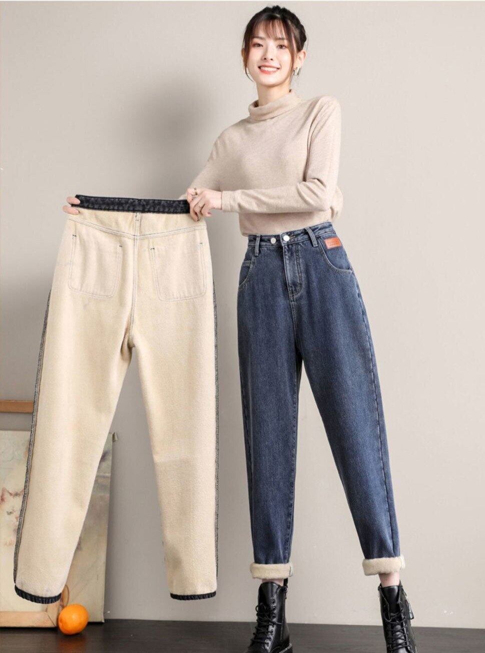 送料無料 だぶだぶぬいぐるみ冬のジーンズ女性 2022 ストリートウエストプラスベルベットハーレム Vaqueros ボーイフレンド厚み暖かいデニムズボン ウィンター 冬物 AE335659595986980