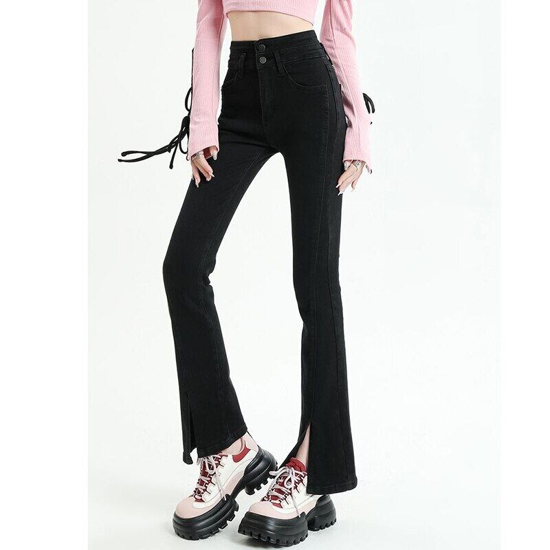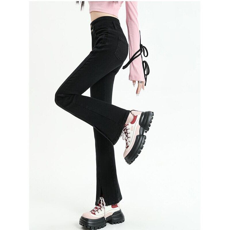 送料無料 シックなスプリットフレアジーンズ女性 2023 ウエストヴィンテージ Vaqueros ストリートスキニーパンツ 86-95 センチベルボトムデニムカプリパンツ レッド ビンテージ AE3356584427436433