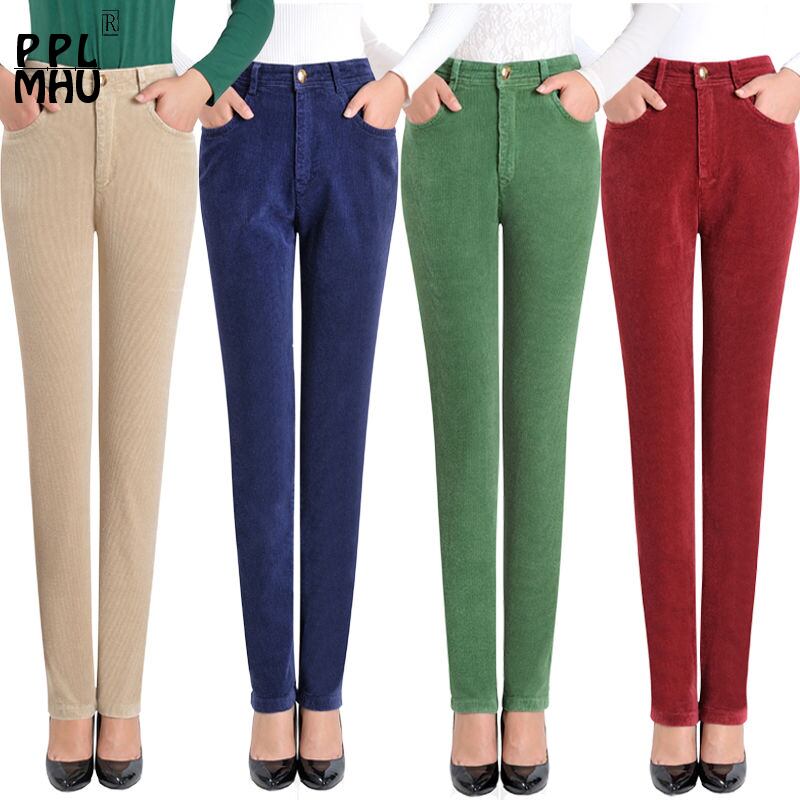 送料無料 キャンディーカラースリムコーデュロイパンツ女性プラスサイズのウエストペンシル Pantalones 母秋冬ストレートズボン 大きめサイズ オータム 秋物 ウィンター 冬物 AE3356511864520528