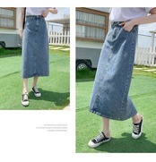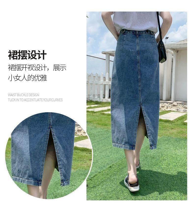 送料無料 プラスサイズ 95 キログラムデニムスカート女性ミッドレングスパッケージ臀部段 Faldas スプリットウエストジャンスカート Faldas Largas 大きめサイズ AE3356539165245384