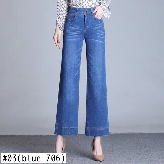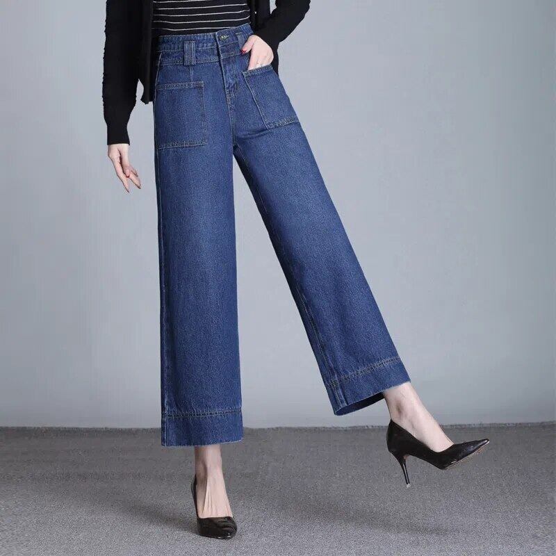 送料無料 オフィスレディポケットだぶだぶのジーンズ女性特大 80 キロワイドレッグパンツ足首までの長さクリックウエスト Vaqueros ブルーズボン ワイドパンツ 会社 学校 通勤や通学にも AE3356540016378765