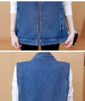 送料無料 ルーズブルーデニムノースリーブジャケット女性ジッパージーンズベストプラスサイズ Clic ソリッドデニムチョッキ 2021 大きめサイズ ソリッドカラー AE3356535950835907
