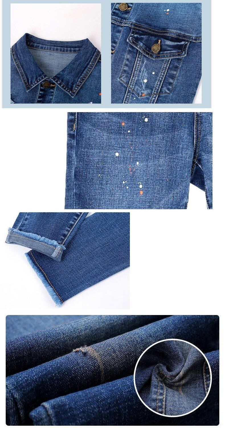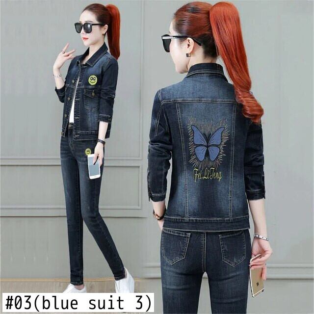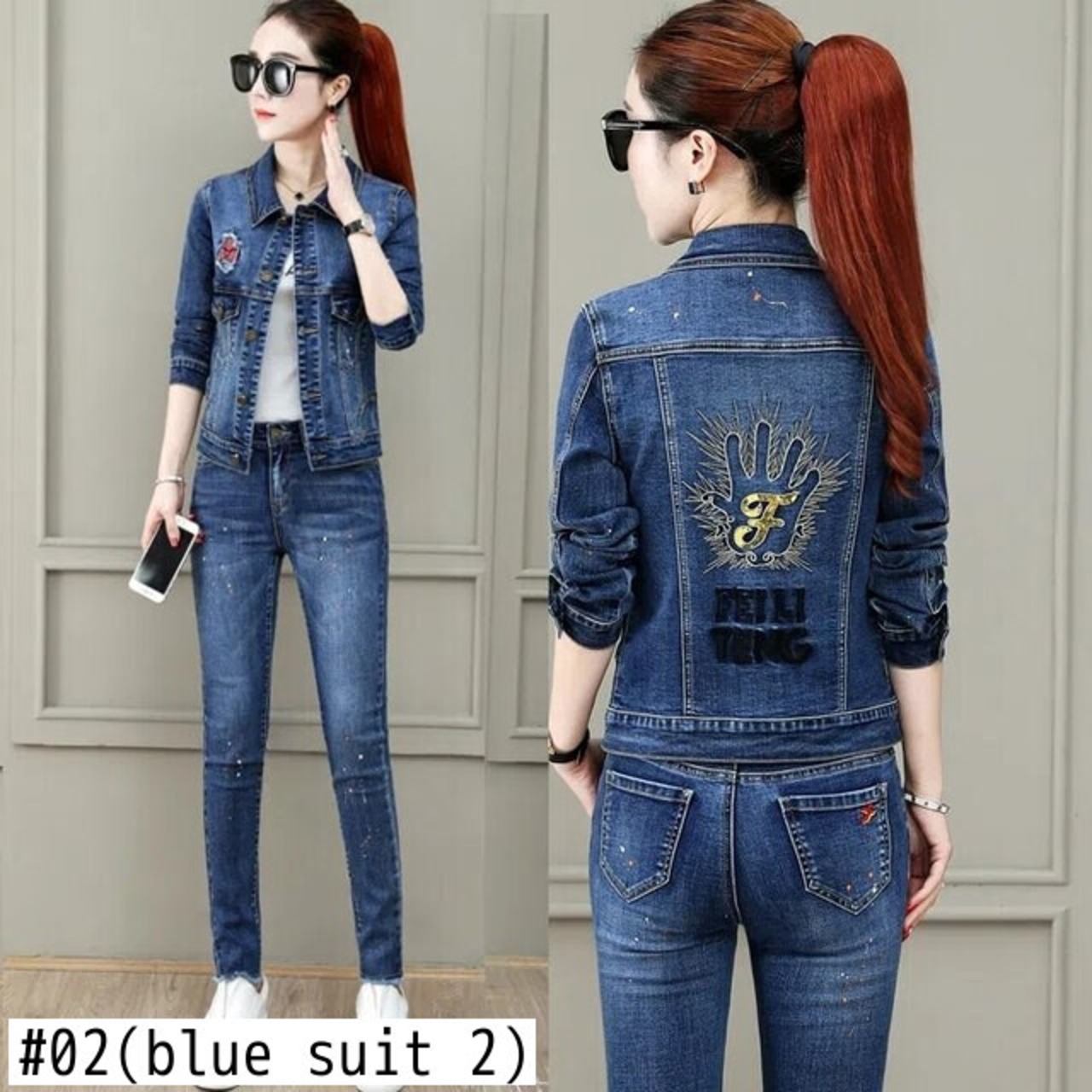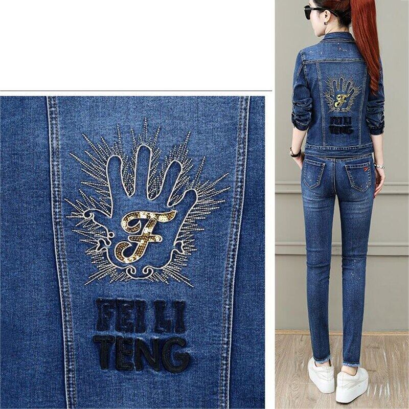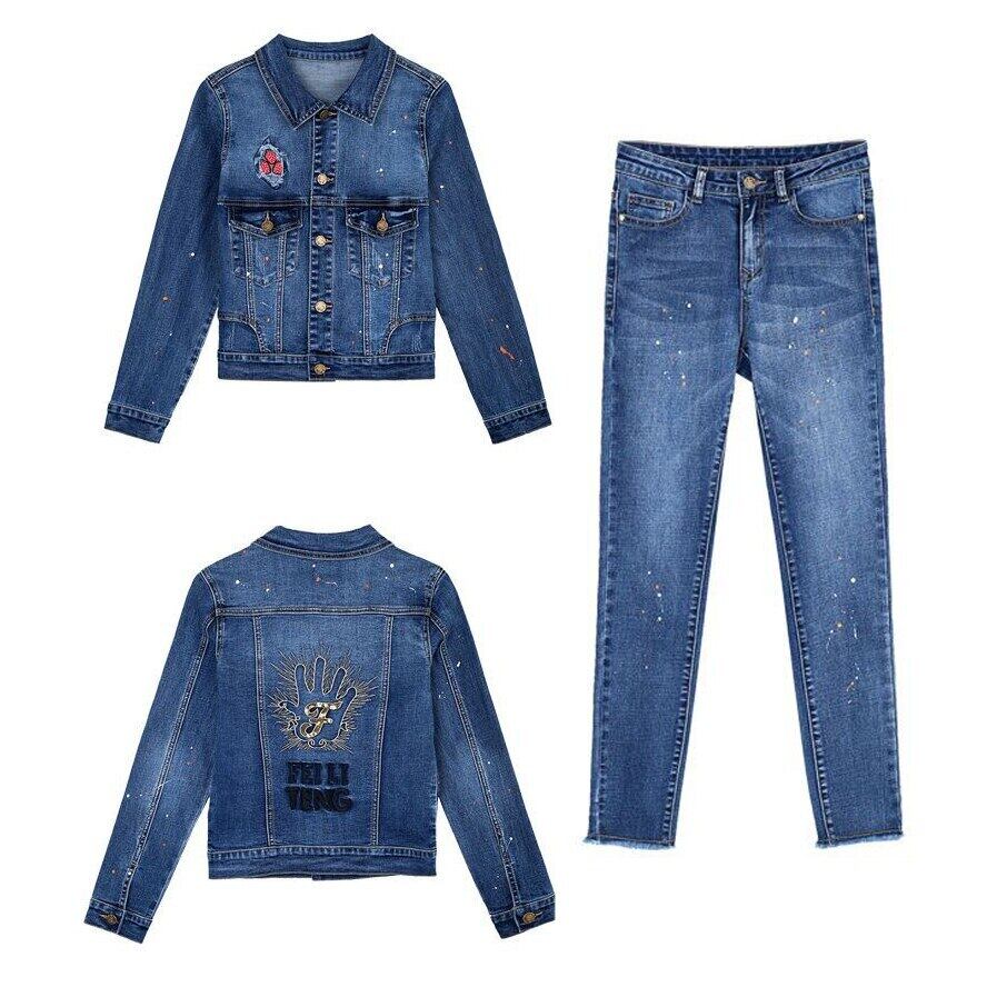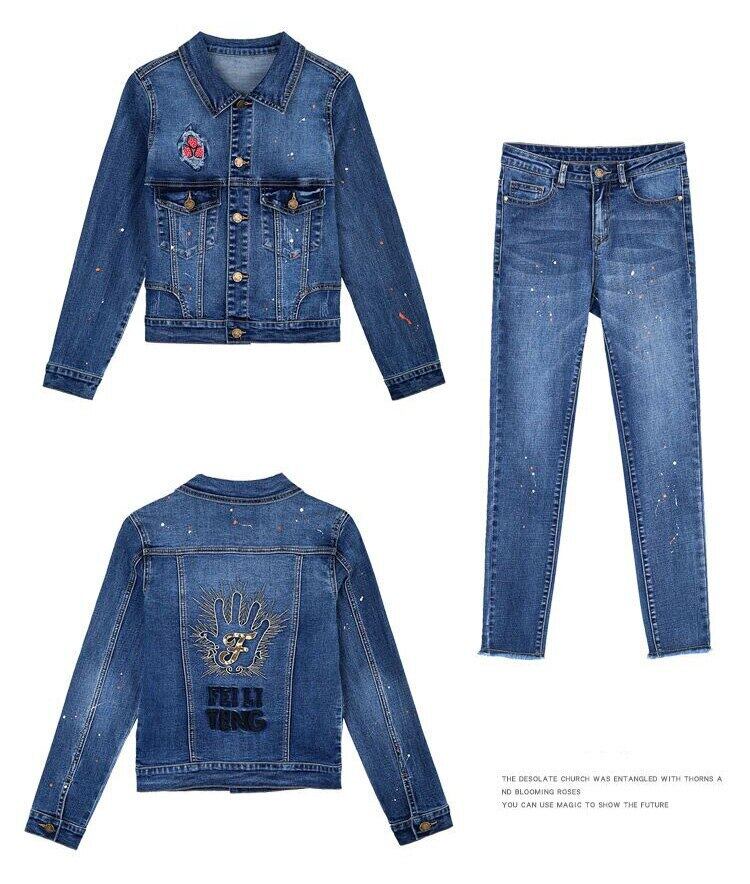 送料無料 ストリートスリムジーンズツーピースセットレディース衣装花ヴィンテージデニムジャケットスキニー Vaqueros 2022 ペンシルパンツカウボーイスーツ フラワーデザイン ビンテージ AE3356562007868157