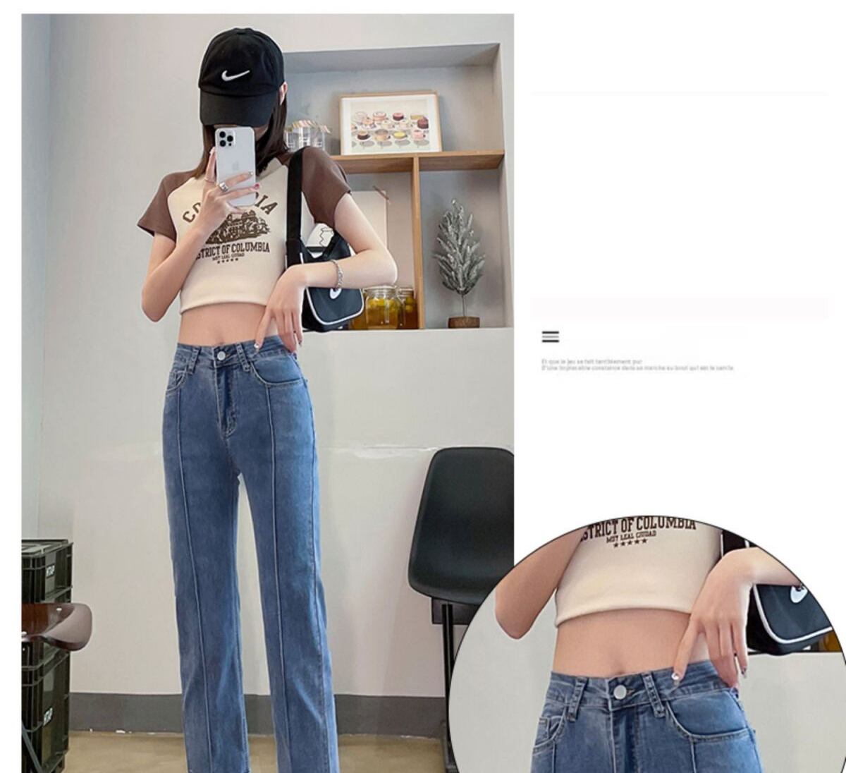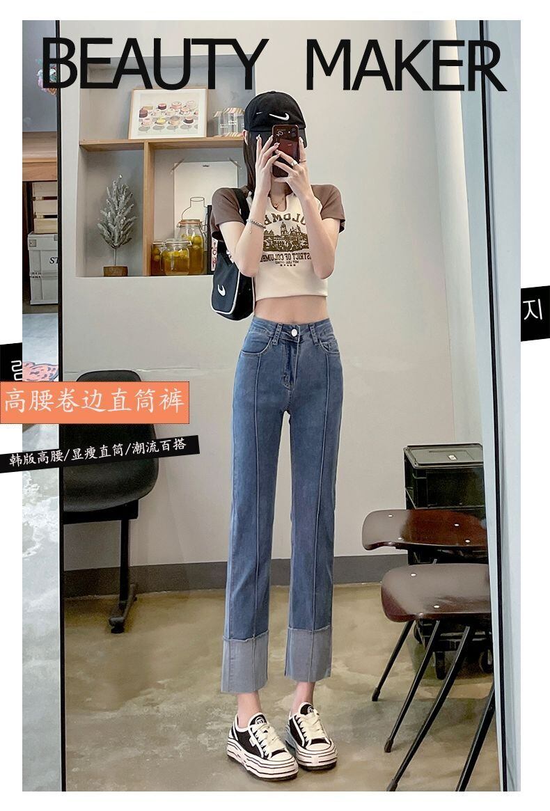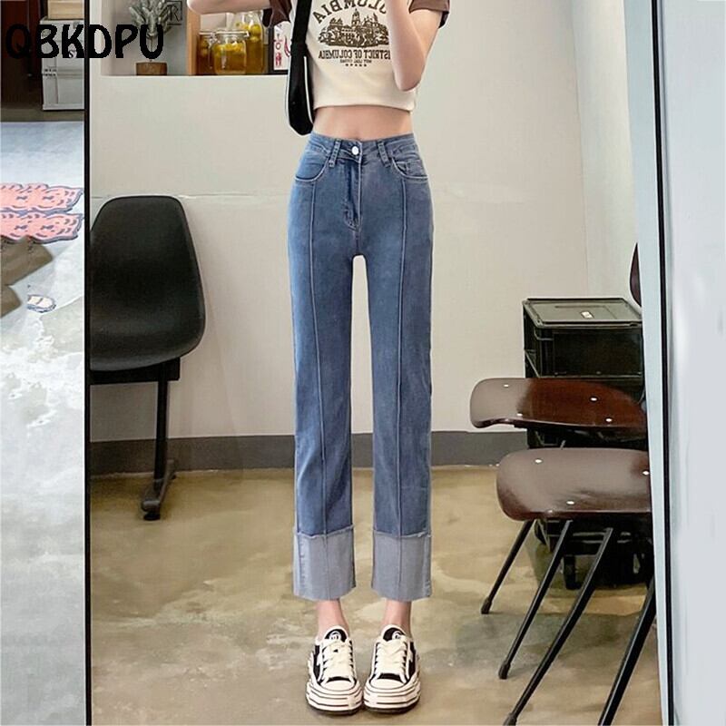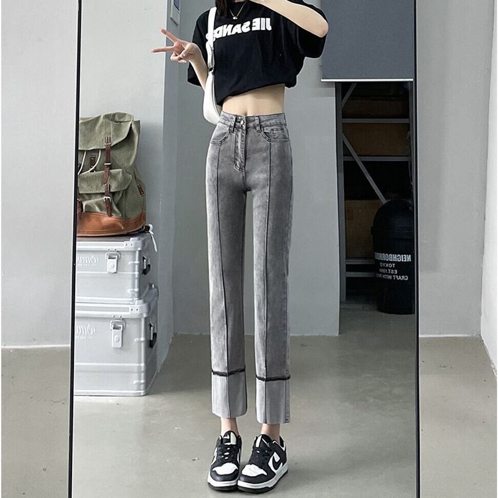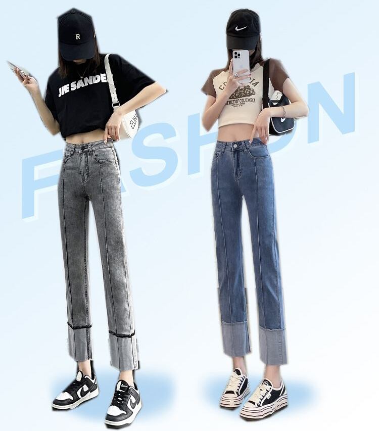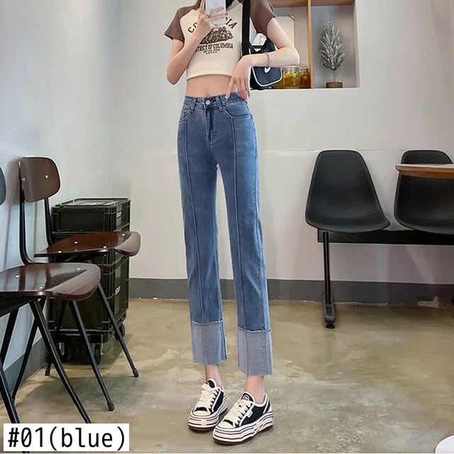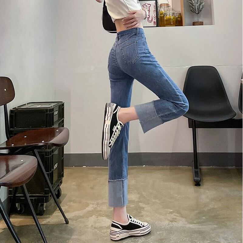 送料無料 ストリート パッチワーク女性のジーンズ ストレート Vaqueros 足首の長さ細いウエスト デニム パンツ スリム カウボーイ カプリパンツ AE3356560371908896