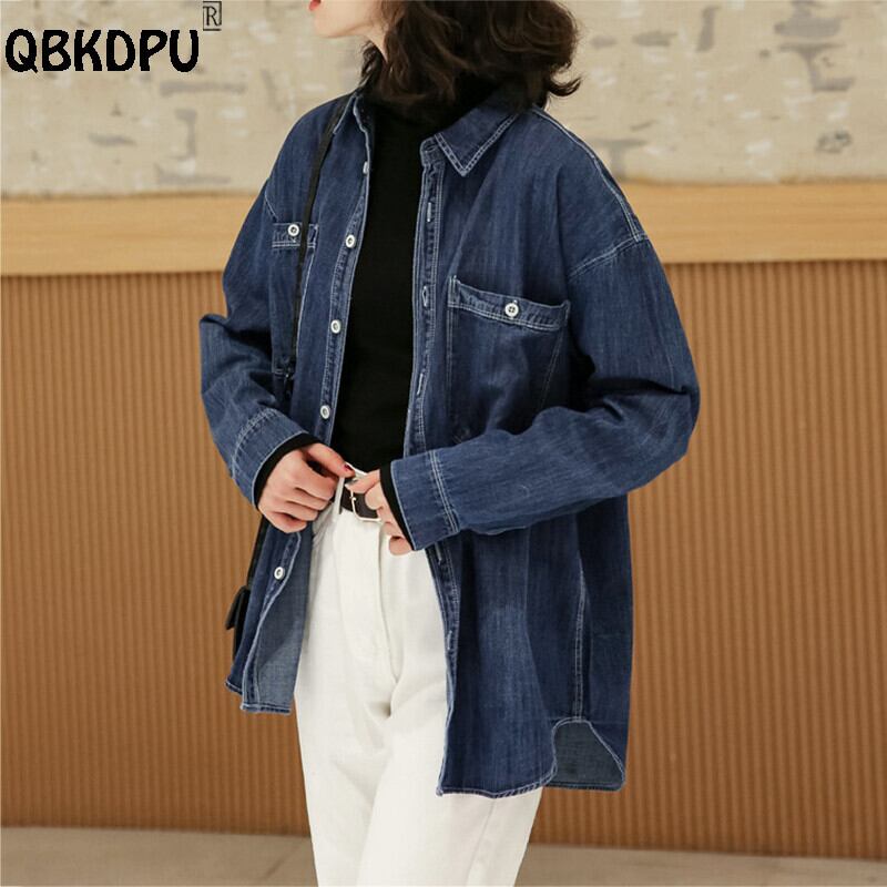 送料無料 ヴィンテージブルールースデニムブラウス女性 2022 ストリートジーンズシャツベーシック春洗浄カウボーイシングルブレストトップス スプリング 春物 ビンテージ AE3356510222078584
