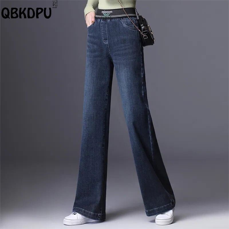 送料無料 弾性ウエストだぶだぶのジーンズ緩いデニムワイドレッグパンツ女性ズボン漂白オフィスレディ特大 Vaqueros エラスティック 伸縮 ワイドパンツ 会社 学校 通勤や通学にも AE3356583265205552