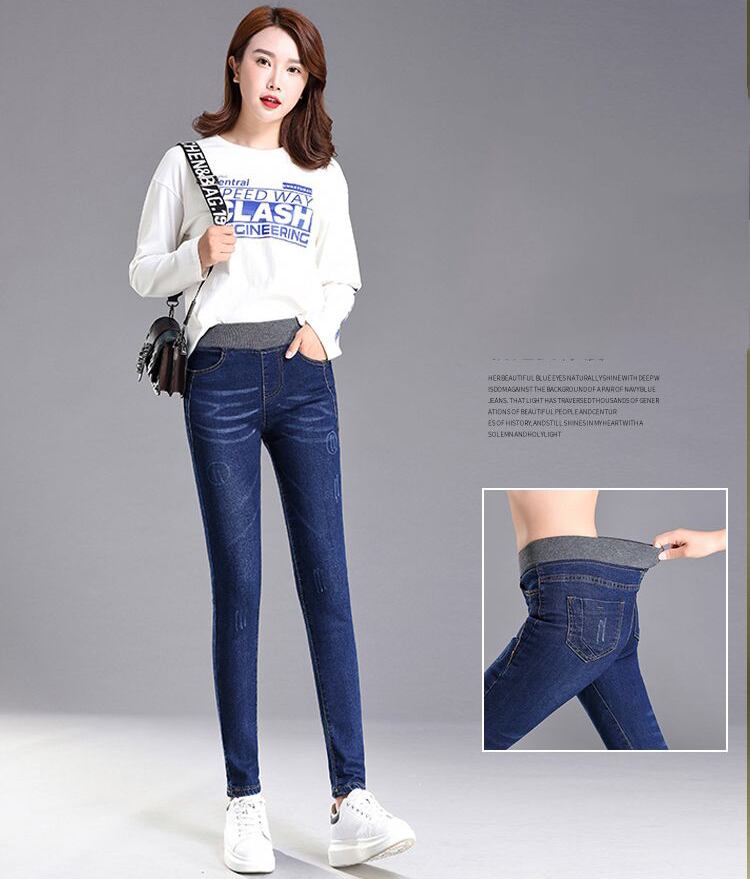 送料無料 プラスベルベット冬ストレッチジーンズ女性特大 38 ウエストデニムレギンスカウボーイスキニーパンツ秋厚く暖かい Vaqueros ウィンター 冬物 AE3356571754863600