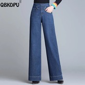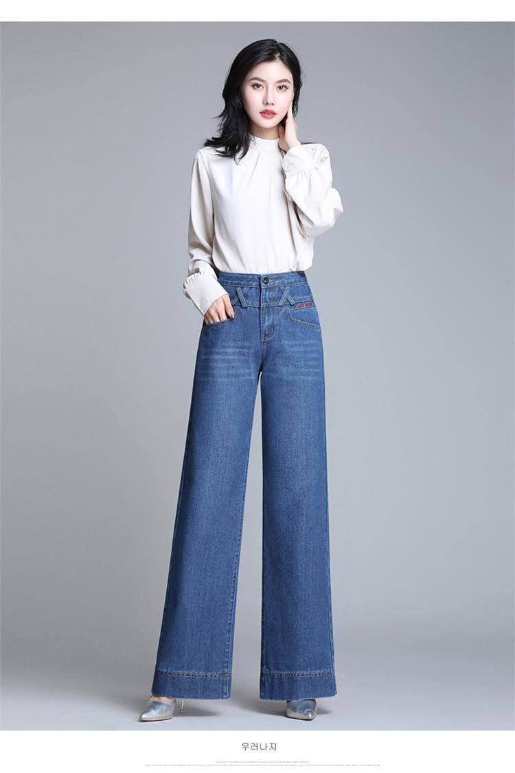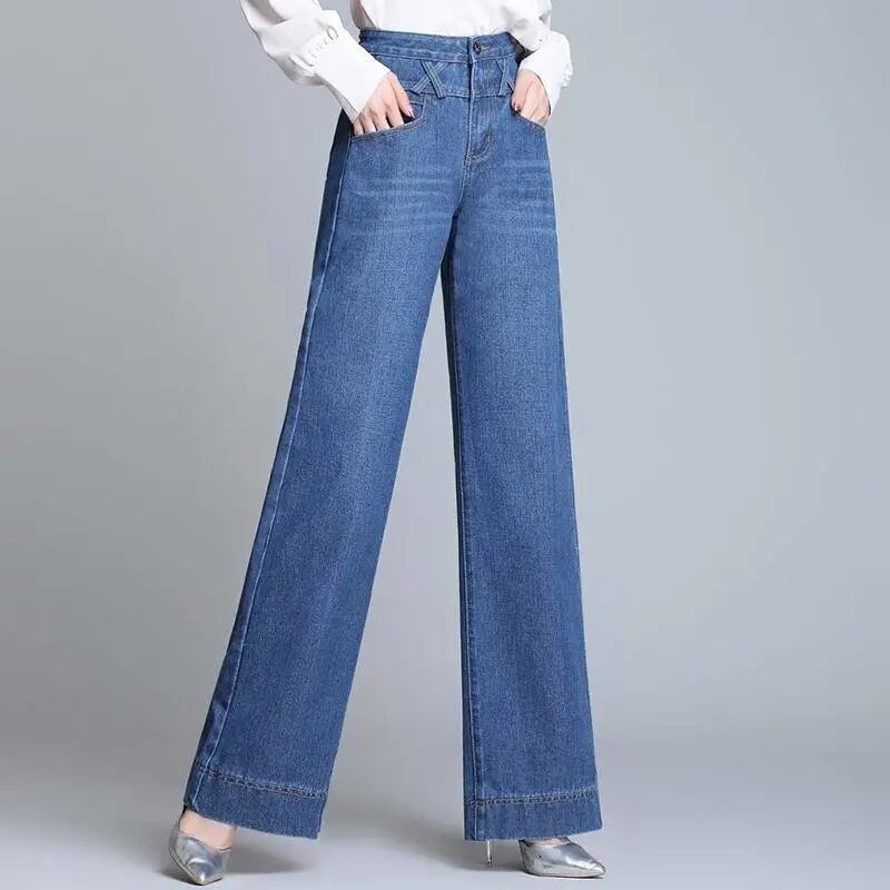 送料無料 ヴィンテージブルーワイドレッグジーンズ女性ウエストママのデニムズボンプラスサイズ洗浄ボタンストレートバギーパンツ 大きめサイズ ワイドパンツ ビンテージ AE3356556537470708