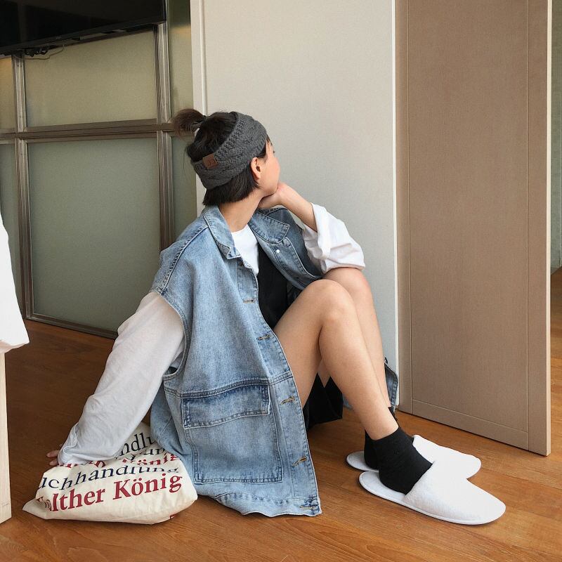 送料無料 特大ルーズ ジーンズ ベスト コート女性ベーシック クール デニム ノースリーブ ジャケット女性ストリート ヴィンテージ チョッキ大きな ポケット ビンテージ AE3356578083829178