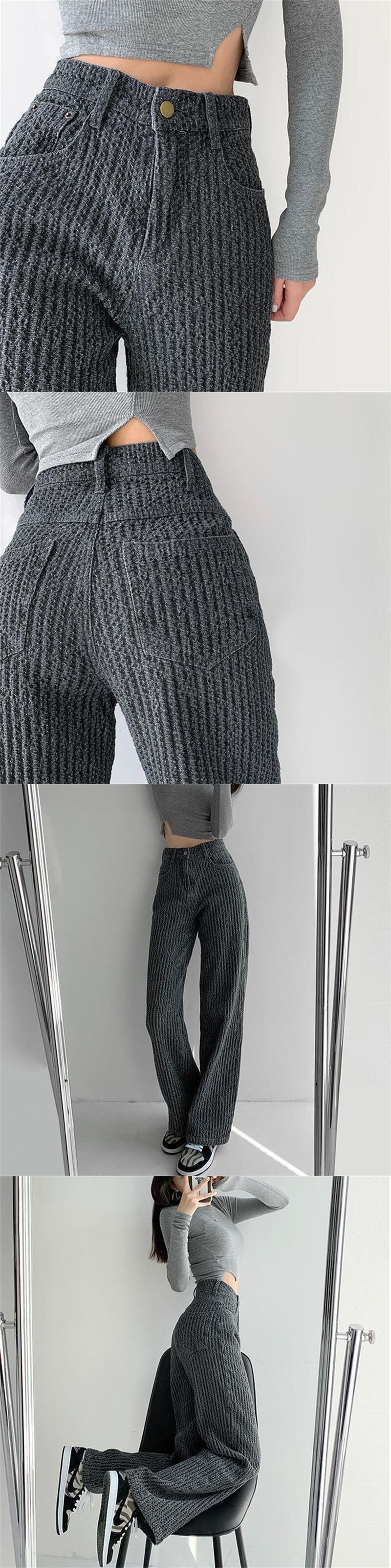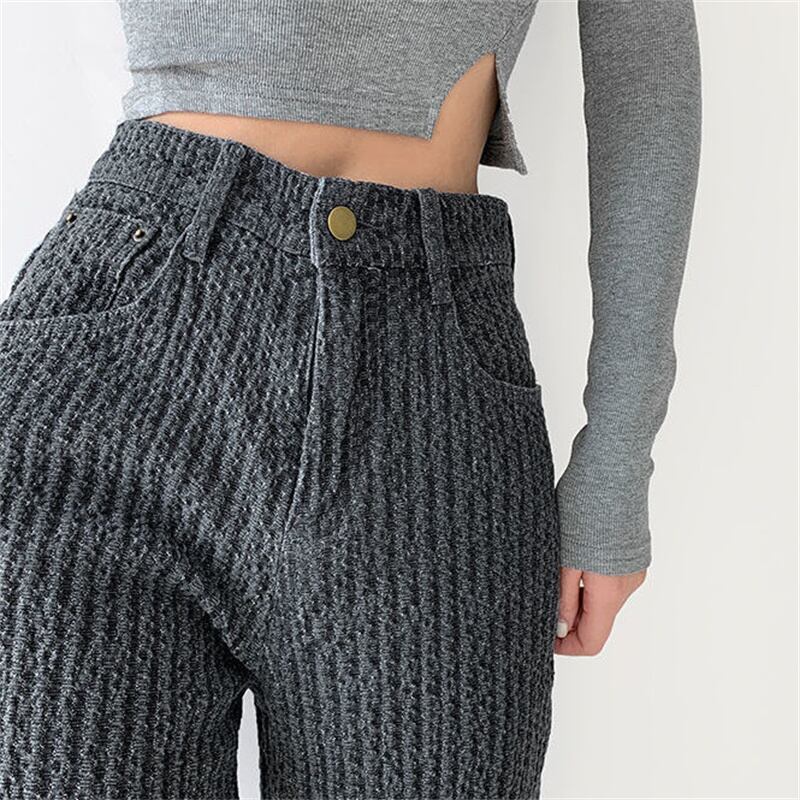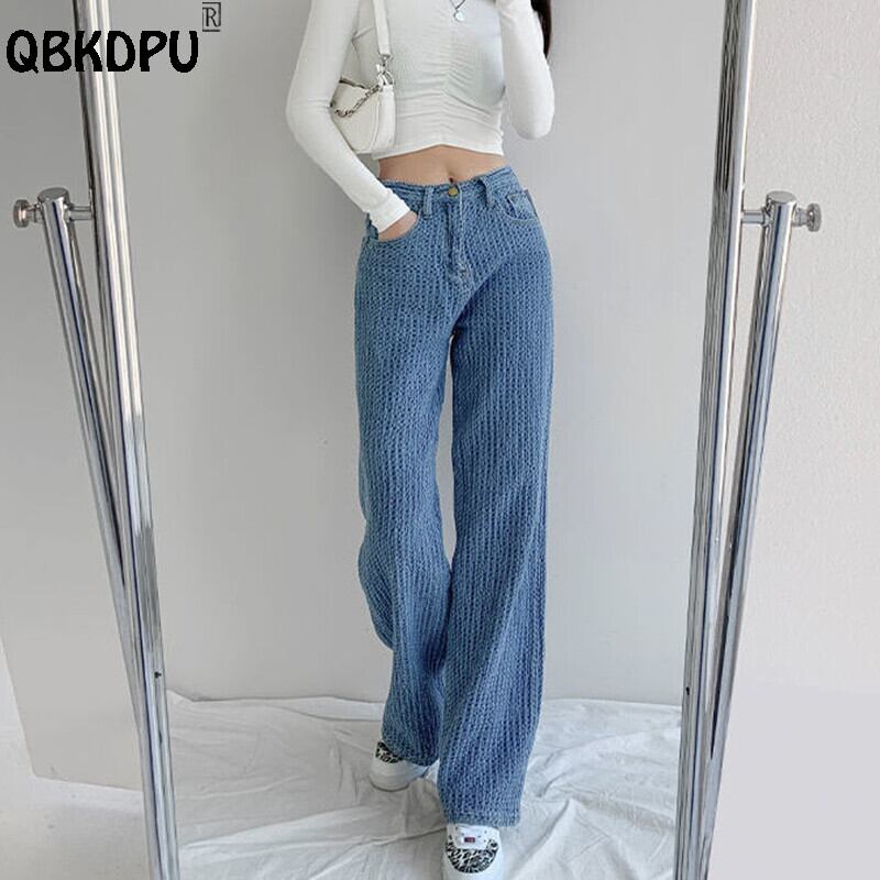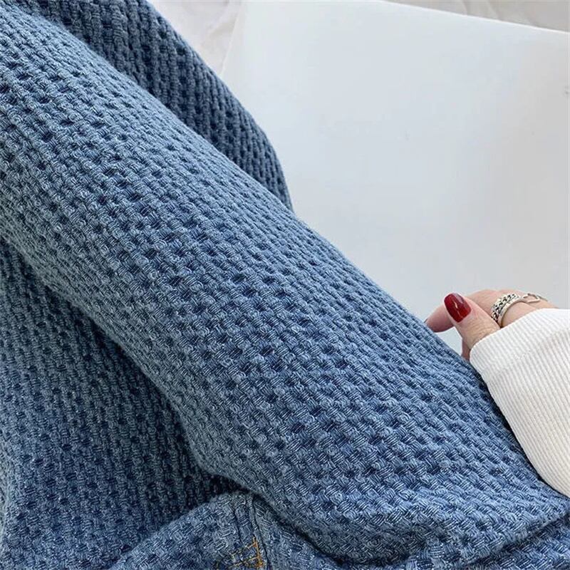 送料無料 ストリート女性のジーンズウエストルーズブルーワイドレッグパンツストレートデニムズボンフェイクニットカウボーイロングジーンズ ファー ワイドパンツ AE3356552938096954
