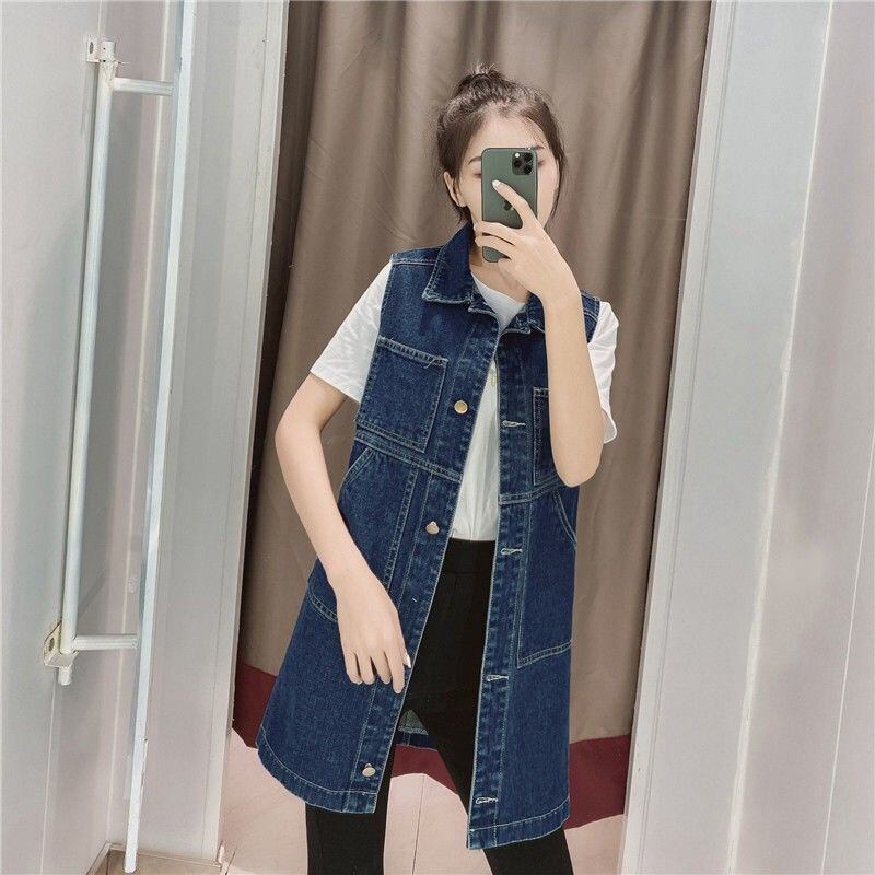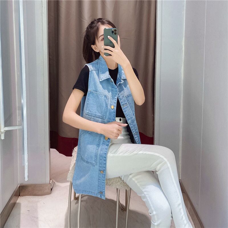 送料無料 プラスサイズ 6XL ミッドレングスデニムベストブルー Chaleco 2022 ノースリーブジーンズジャケット女性ラペルロングチョッキ 大きめサイズ AE3356560522996528