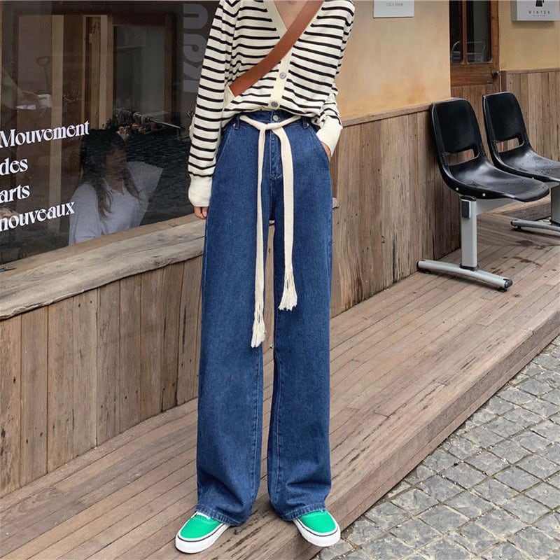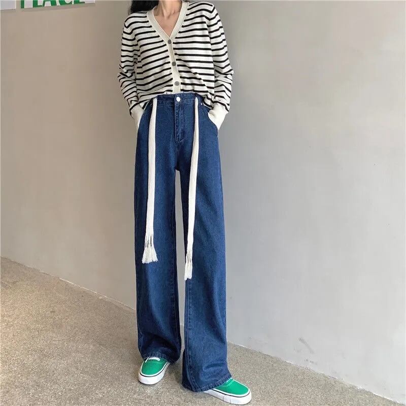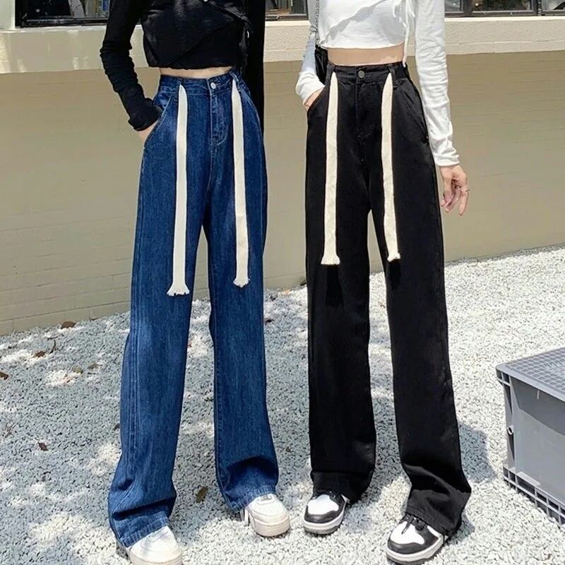 送料無料 ストリートレースアップワイドレッグジーンズ女性ウエストジャンだぶだぶのパンツデニムズボンブルーブラックストレート Vaqueros ワイドパンツ AE3356546204104301