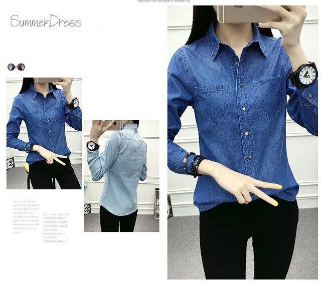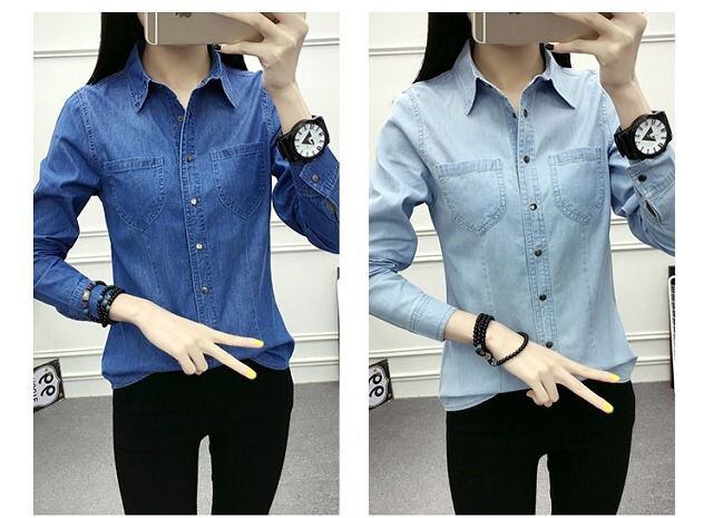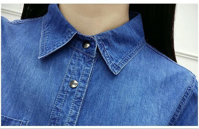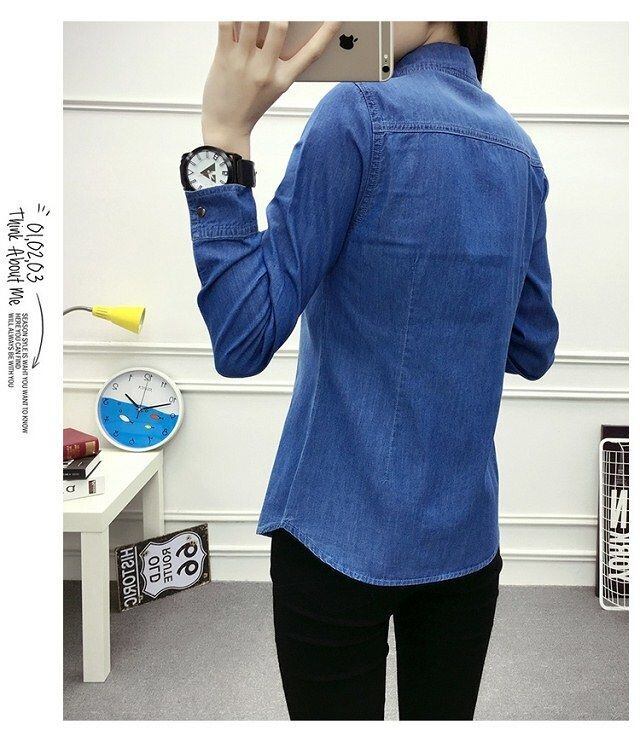 送料無料 Clic ライトブルーデニムシャツ女性ラペルスリムショートブラウス Blusa オフィスレディボタンジャン春トップス スプリング 春物 会社 学校 通勤や通学にも AE3356588971358841