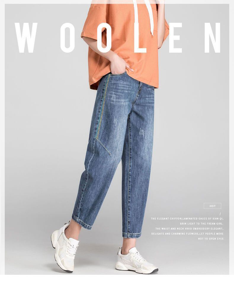 送料無料 ウエストハーレムジーンズクリック特大 34 デニムパンツ女性ジョガーストリート BF バギー Vaqueros 足首の長さのジーンズのズボン AE3356526671320883