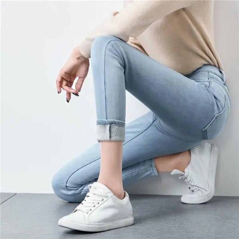 送料無料 冬プラスベルベットスキニージーンズ女性暖かい厚いデニムのズボン無地ヴィンテージフリース Vaqueros 秋の基本的なカウボーイレギンス オータム 秋物 ウィンター 冬物 ソリッドカラー ビンテージ AE3356554241989206