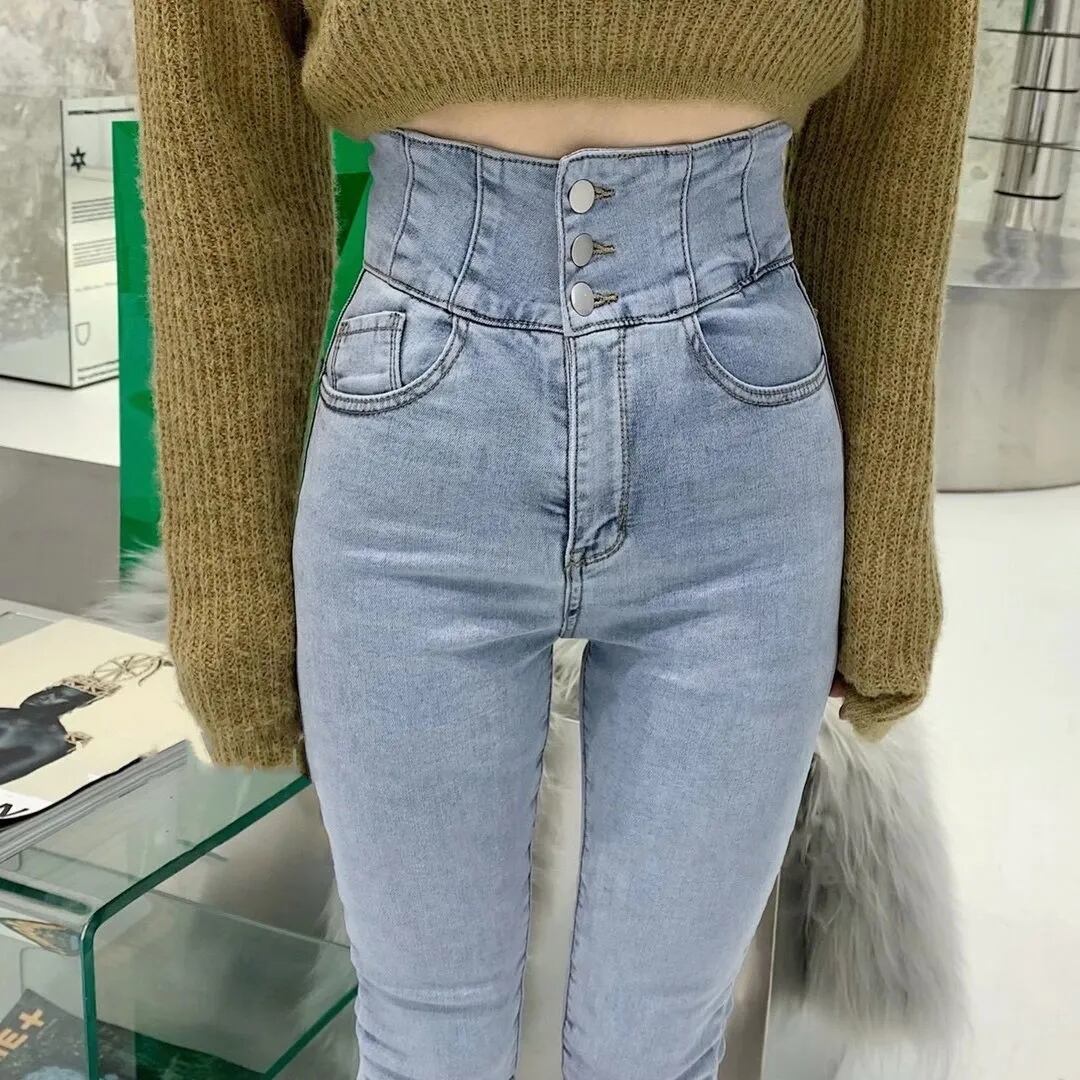 送料無料 スーパーウエストヒップリフトジーンズ女性のセクシーなスリムデニムパンツボタンストレッチレギンス女性春鉛筆スキニーパンツ足首 スプリング 春物 AE3356557598229444