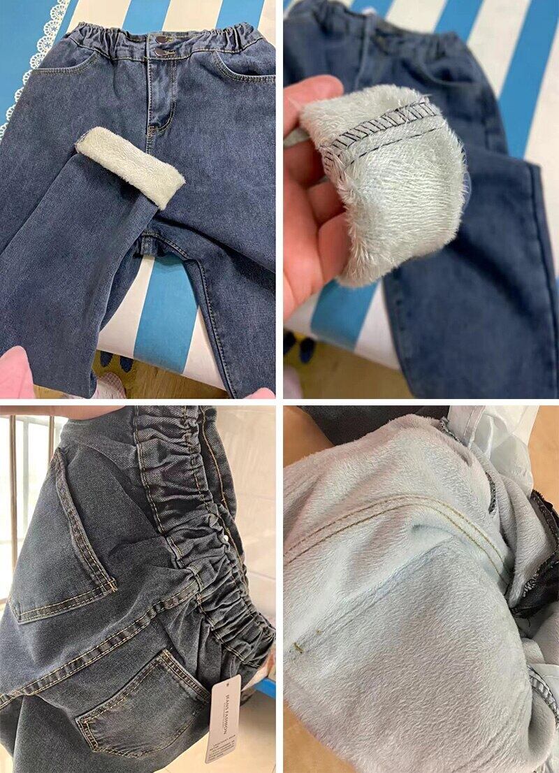 送料無料 ストリート暖かいベルベットの冬のジーンズ女性弾性ウエストハーレム Vaqueros 足首の長さだぶだぶのデニムパンツ エラスティック 伸縮 ウィンター 冬物 AE3356583198783008