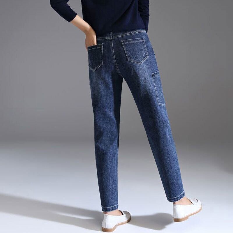 送料無料 特大 34 ウエストジョガージーンズ女性ポケットウエストデニムハーレムパンツ 2022 春の足首の長さ緩い Vaqueros スプリング 春物 AE3356536265218048