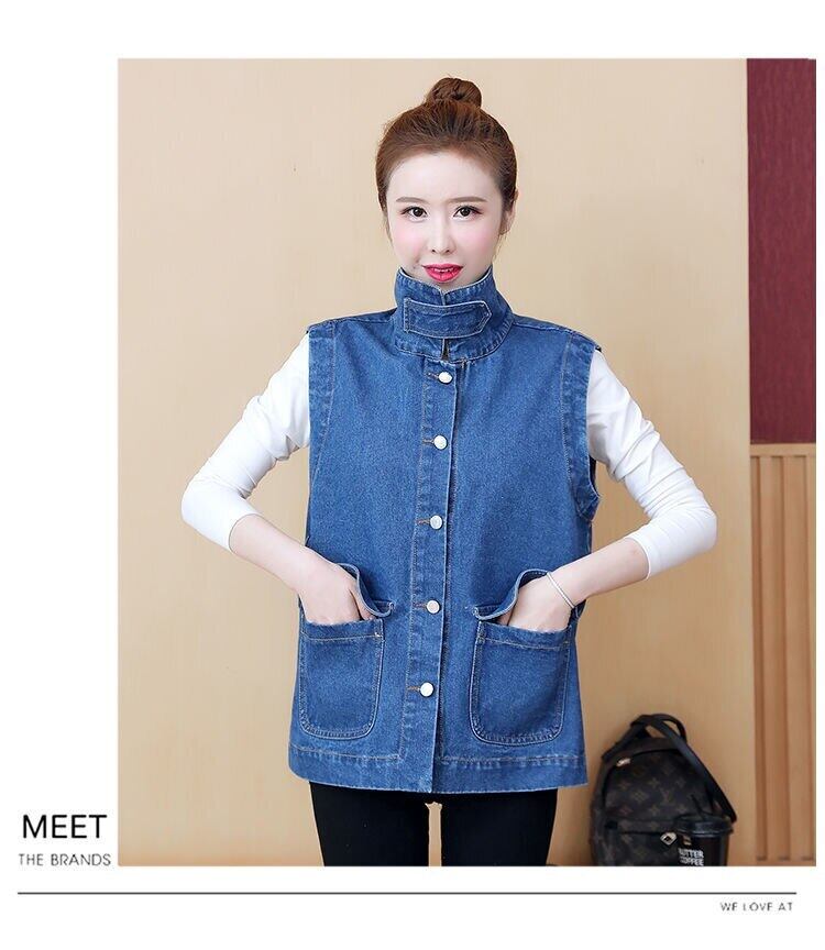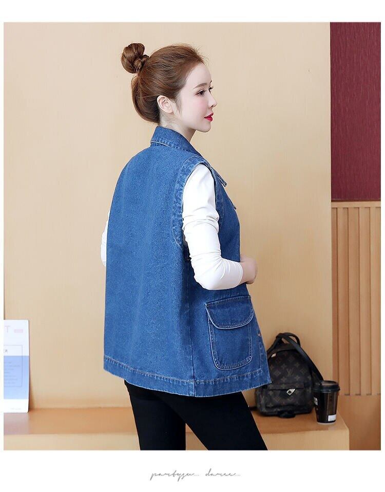 送料無料 プラスサイズの女性のデニムベストブルーノースリーブデニムジャケットスタイルジャンチョッキ春夏 Chaleco Vaquero 大きめサイズ スプリング 春物 サマー 夏物 AE3356572012485317
