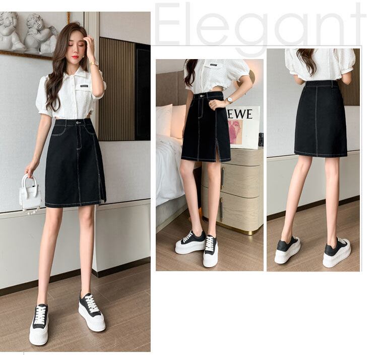 送料無料 短い黒のスカートの女性 2022 スリムサイドスリットデニム A ラインスカートストリートウエスト夏ジャン Faldas ショート ブラック サマー 夏物 Aライン AE3356555857474220