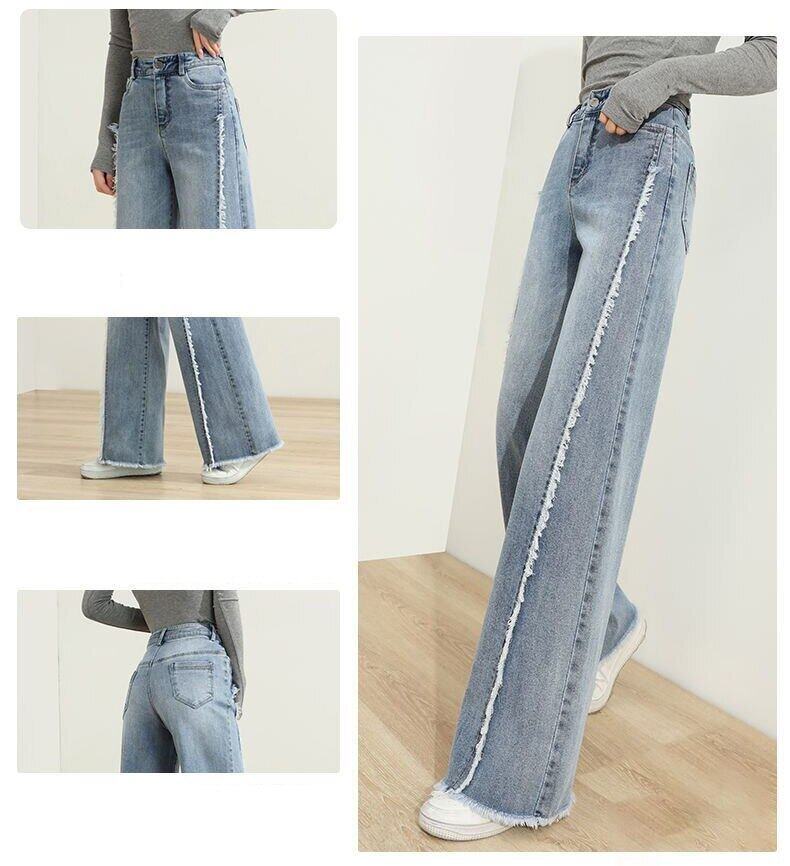送料無料 特大 34 Tel ワイドレッグジーンズ女性ウエストだぶだぶの Vaqueros シックなパッチワークデニムストレートパンツ ワイドパンツ AE3356574557896536