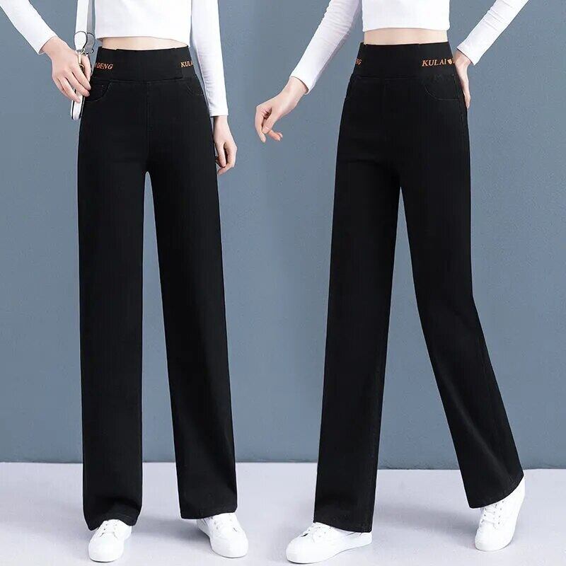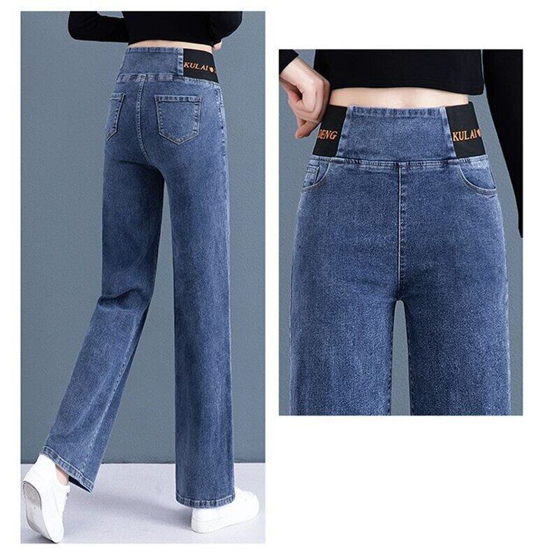 送料無料 弾性ウエストワイド脚ジーンズ女性パッチワーク特大 34 バギー Vaqueros 97-102 センチメートルストレートデニムズボン エラスティック 伸縮 ワイドレッグ ワイドパンツ AE3356597629988236