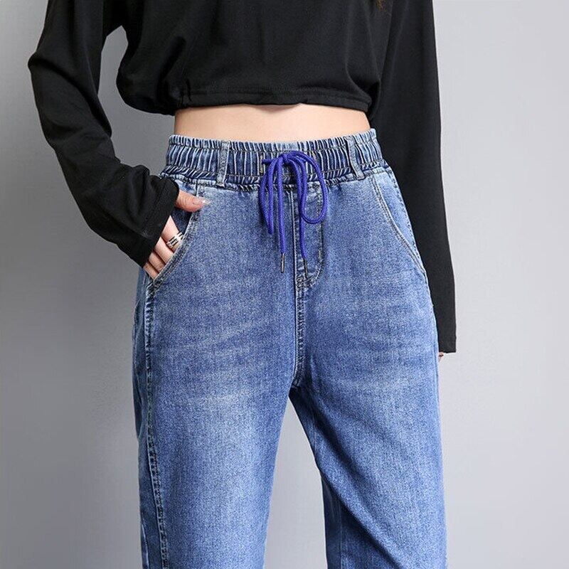 送料無料 女性の黒弾性ウエスト ハーレム ジーンズ プラス サイズ洗浄レースアップ Clic バギー Vaqueros ボーイ フレンド スタイル ストリート デニム パンツ ブラック エラスティック 伸縮 大きめサイズ AE3356524585986845 | 女性の為の通販サイト-fashion navi
