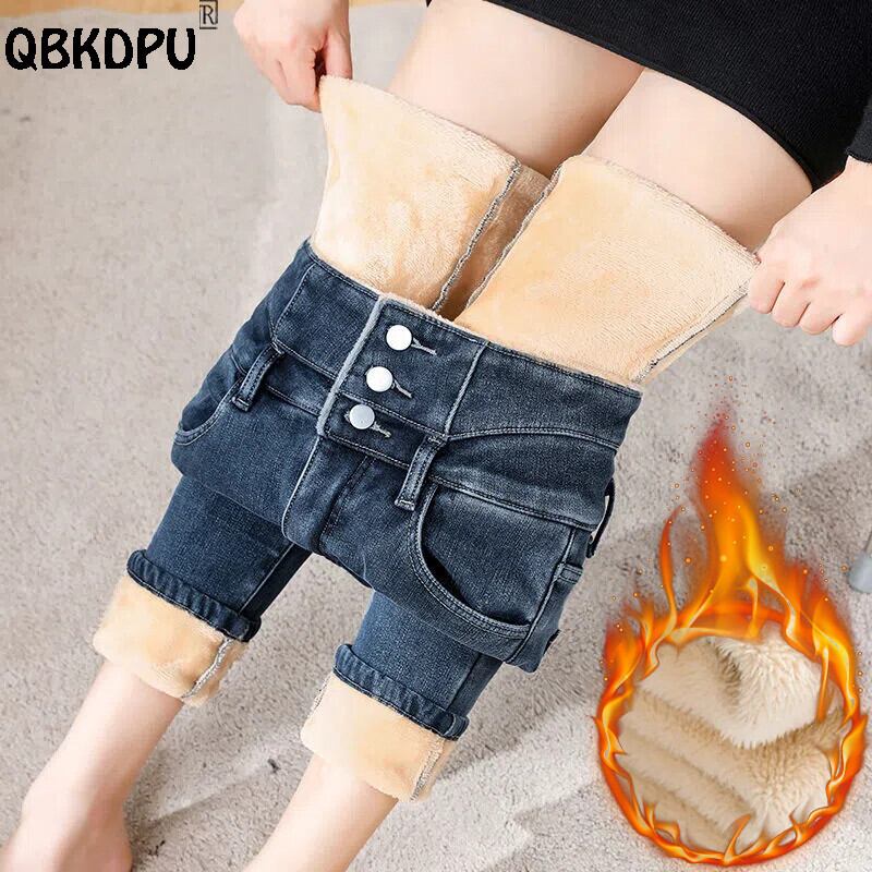 送料無料 ヴィンテージスーパーウエスト冬のジーンズの女性暖かいプラスベルベットスキニー Vaqueros 厚いデニムパンツ鉛筆レギンス ウィンター 冬物 ビンテージ AE3356591528858780