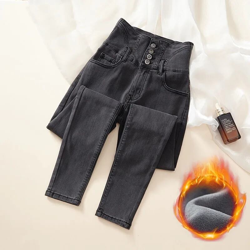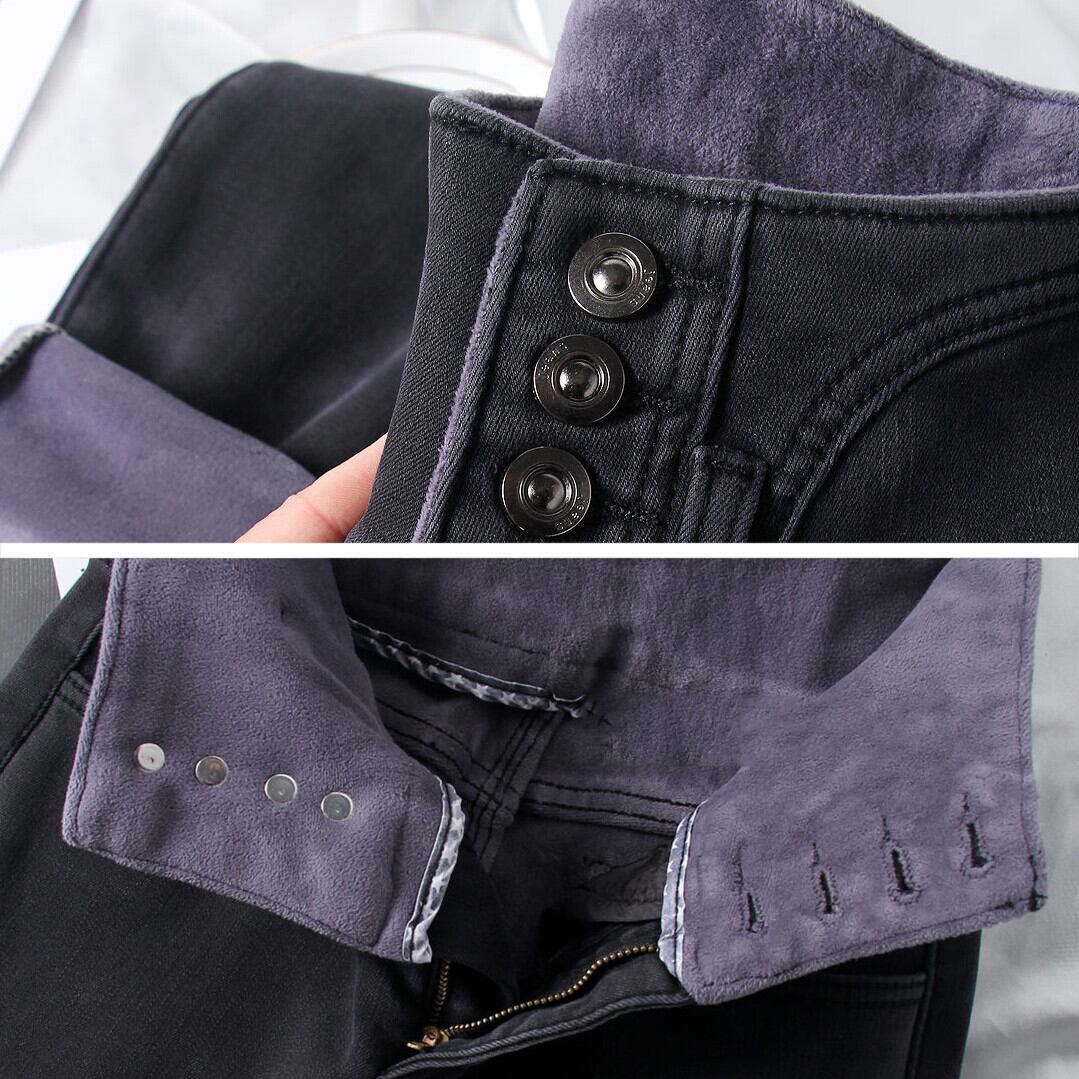 送料無料 ヴィンテージプラスベルベット女性のジーンズボタンウエスト厚く暖かい鉛筆 Vaqueros スモーキーグレー冬のデニムパンツスキニーレギンス ウィンター 冬物 ビンテージ AE3356544678490628