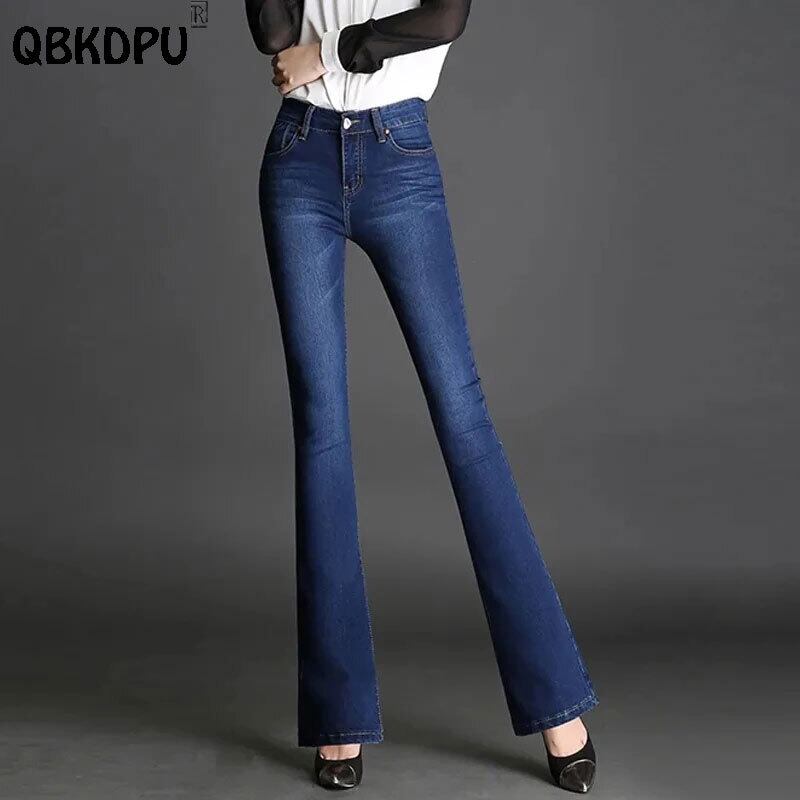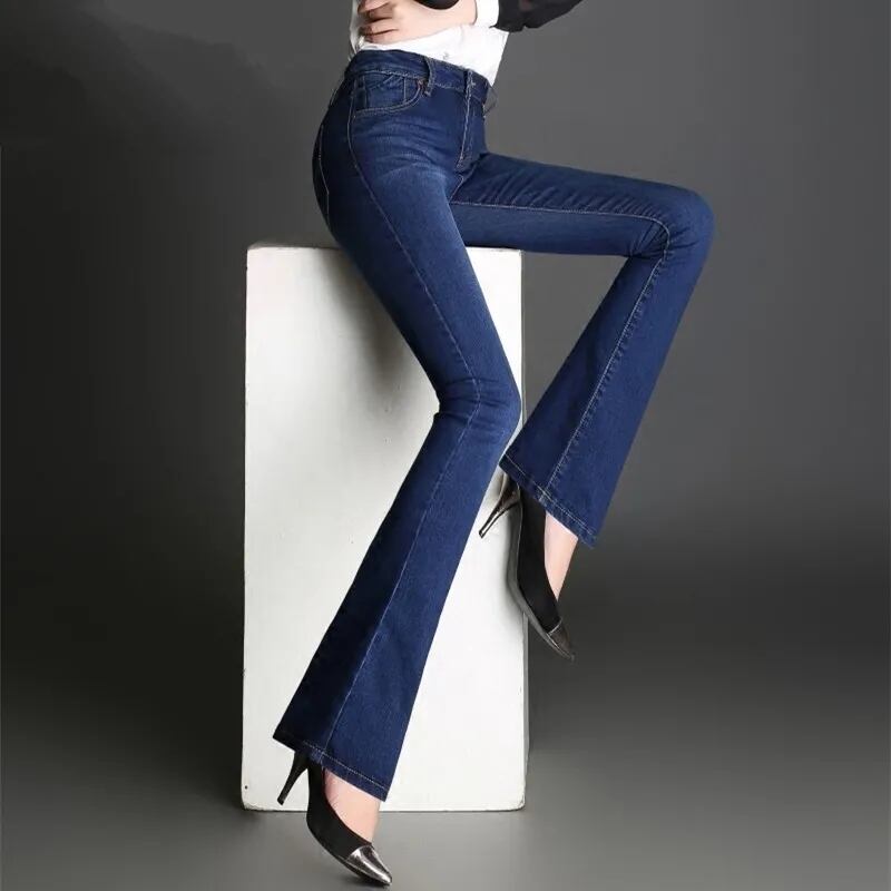 送料無料 ヴィンテージブルースリムフレアジーンズ女性ミッドウエストスキニージーンズウォッシュストリートデニムパンツベルボトムのズボン ビンテージ AE3356591974635376